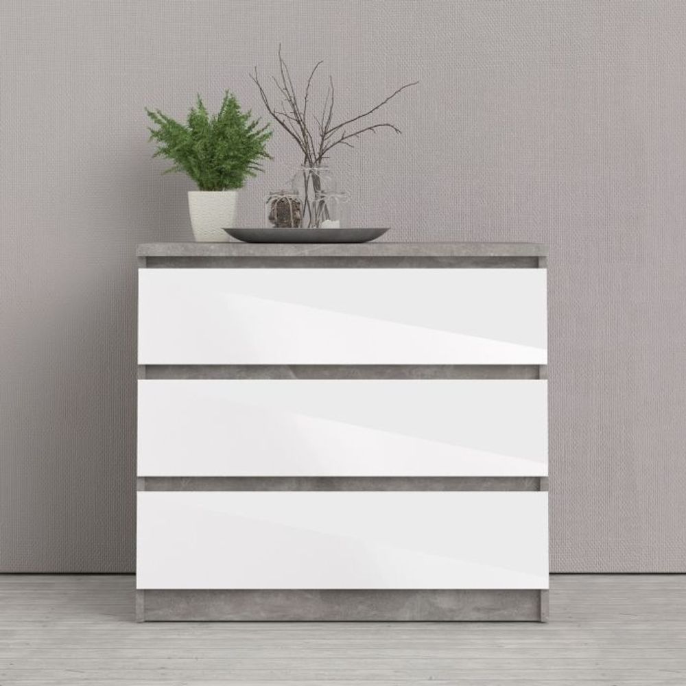 Item Code: 70276235UU Naia Chest of 3 Drawers in White High Gloss. The Naia collection offers a tribute to timeless furniture design with a modern edge.
