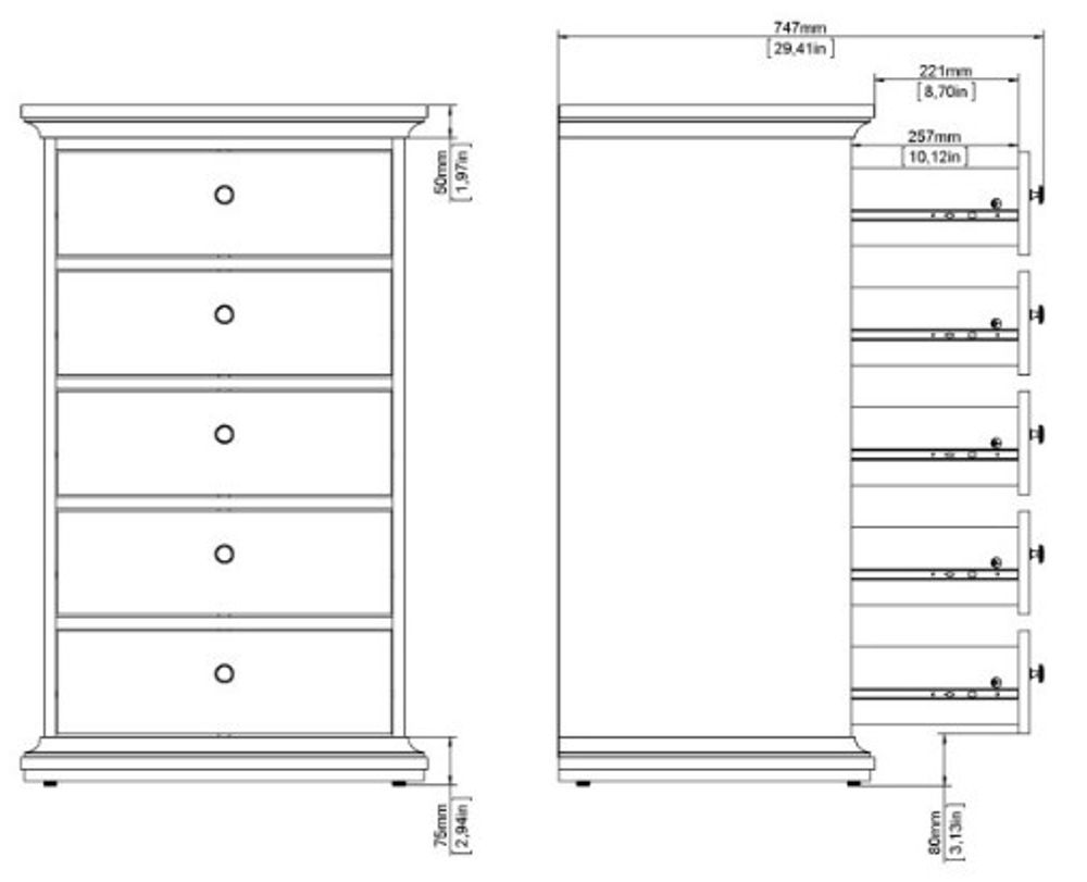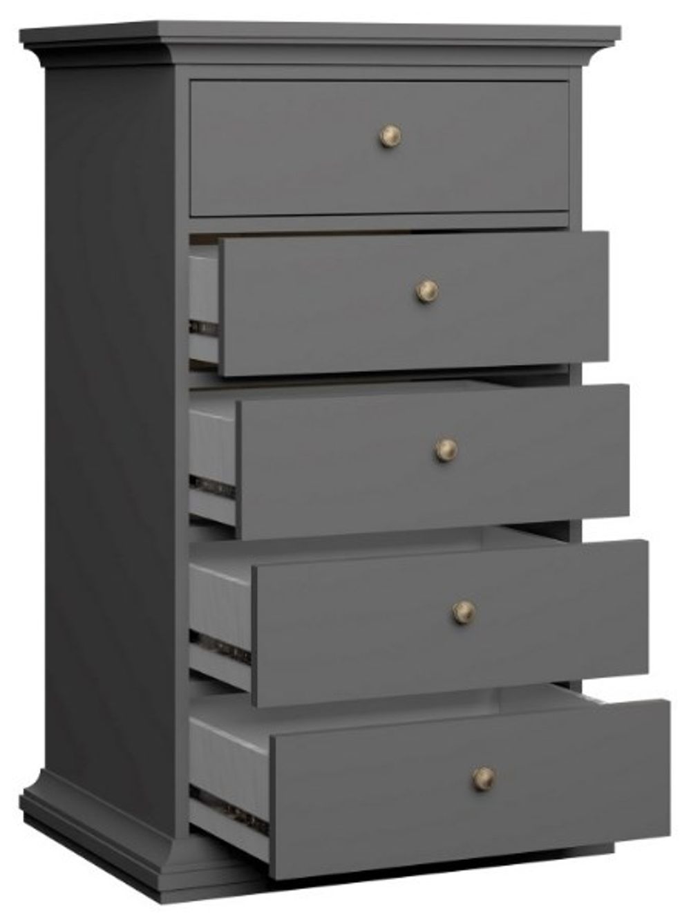 Paris Grey 5 Drawer Narrow Chest