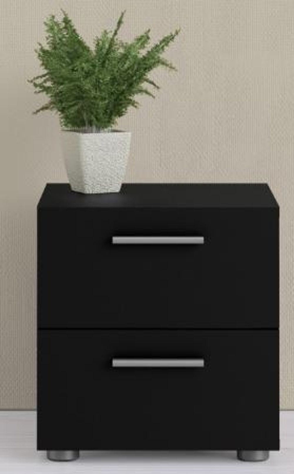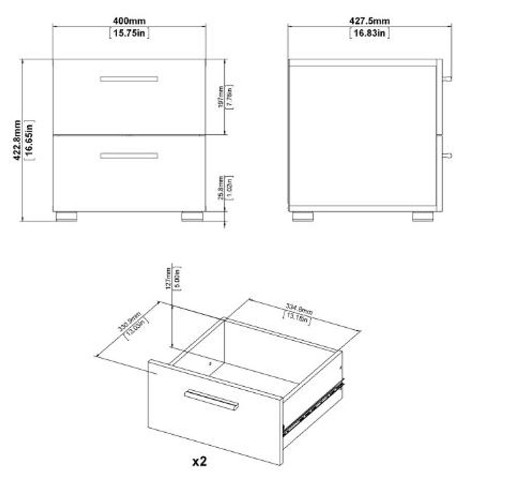 A classic 2 drawer bedside in black. It will bring a great storage space to your bedroom, home office or living area. A simplistic design that will not go unnoticed.