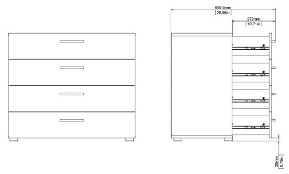 A classic 4 drawer chest of drawers. It will bring a great storage space to your bedroom, home office or living area. A simplistic design that will not go unnoticed in Oak.