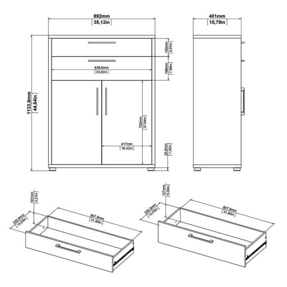 Prima White 2 Door 2 Drawer Filing Cabinet