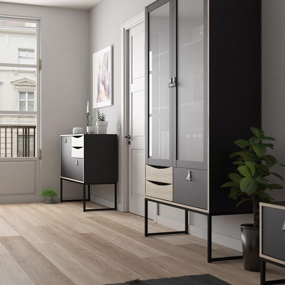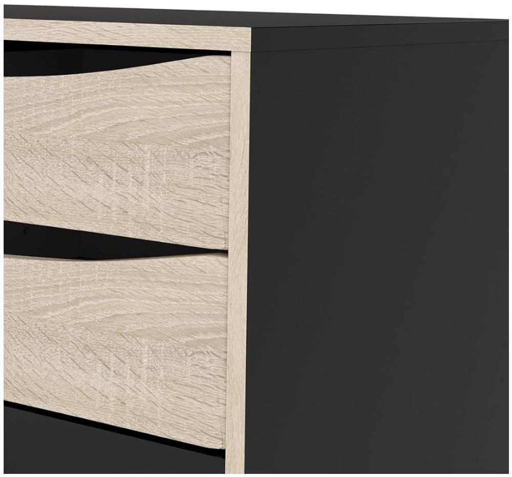 Stubbe Sideboard with 1 Door 3 Drawers in Matt Black Oak The Stubbe range features a striking design with a bold colour contrast. The clean look makes it an ideal addition to any room, whilst the sleek build makes it easy to fit into existing spaces.