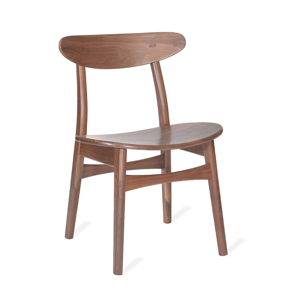 Item Code: KSWN06 The epitome of comfort and style, the Kersoe Dining Chair is crafted from striking solid walnut. Featuring a rounded wooden back and finely tapered legs, this pared back design brings a warm, natural aesthetic to dining room or study and the seat also works perfectly as an occasional chair in a bedroom. Can be styled with the Kersoe Dining Table, with other pieces in the Kersoe collection and the Kingsbury Table Lamp.Crafted in Walnut Fully assembled For indoor use only To clean simply wipe with a damp cloth.