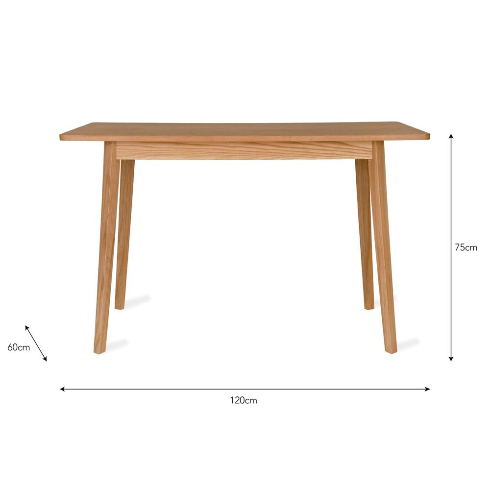 Item Code: ADAS02 A space to work from home. A designated homework spot. Or a dining table for two. Our Ashwicke Desk is simple, sturdy and beautifully crafted from Ash with a mid-century design. Style alongside our Uley Chairs and organise with Brushfield, Purbeck or Farringdon accessories.Crafted in Ash and Ash Veneer Top is Ash Veneer, Legs are solid Ash For indoor use only Assembly required (instructions included) Maximum weight: 100kgs Comes with a oil matt seal To clean simply wipe with a dry cloth.