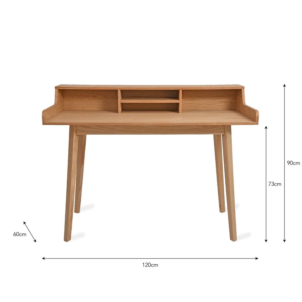 Item Code: ADAS01 Where the Ashwicke Desk is that all-rounder, this is definitely for those who love to be extra organised. Slotted storage inspired by old school writing desks can be filled with envelopes, stationery and accessories to create the ultimate workspace. Choose a desk that's timeless. A desk that works in the corner of a living room, in a designated study or an outdoor studio. Then build up from there, with seating, lighting and accessories to suit every interior.Crafted in Ash For indoor use only Assembly required (instructions included) Maximum weight: 100kgs Comes with a oil matt seal To clean simply wipe with a dry cloth.