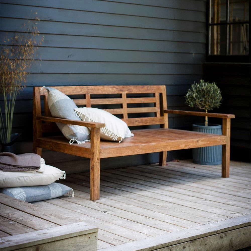 Item Code: FUTE05 Relax in style with the Chastleton Day Bed. Inspired by deep-seated ornate Indonesian day beds, we have simplified the design with a striking lined back and long arms. Perfect to snuggle up on.Crafted from Teak, each piece is carefully selected by hand adding to its organic aesthetic. The robust material will weather gracefully and can be left outside all year round, although we do advise covering in the winter months to prolong its life. The lovely outdoor day bed will be a lovely addition on the patio, decking area or beside a pool, seating two people comfortably for those long summer days.Crafted in Teak Weatherproof Fully-assembled Each piece is carefully selected by hand and natural flaws are a characteristic of this material Naturally over time the Teak will turn a soft grey colour We recommend that all outdoor furniture is covered or stored under cover if left outside for long periods of time or during the winter months Ensure that the furniture is completely dry before covering Due to the natural material some infills will be visible but this doesn't affect the functionality of the piece To protect, clean and nourish the wood we recommend using a Teak Cleaner and Teak Shield.