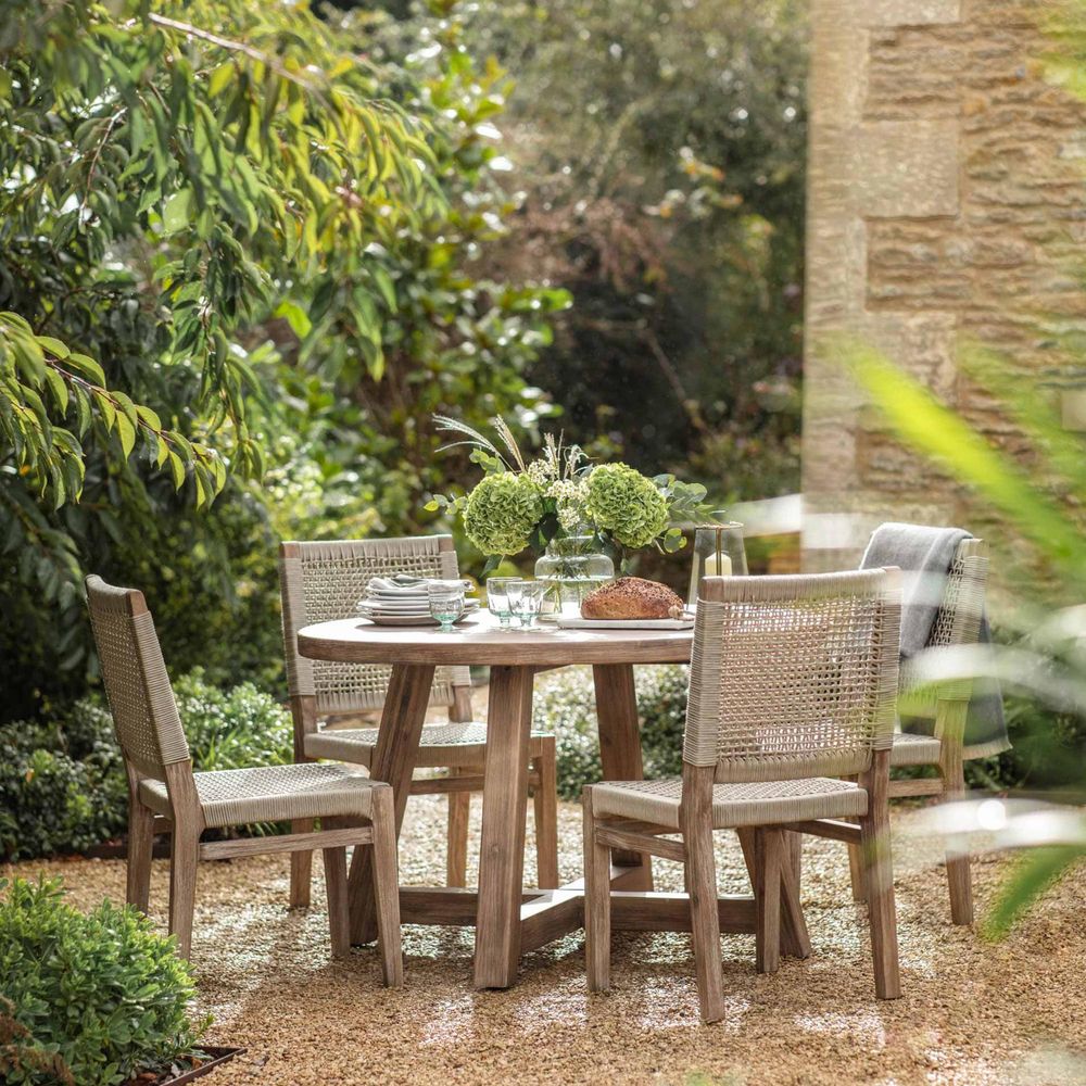 Item Code: LFCH1309 A design classic, our Chilford Solid Wood Round Dining Table is a piece that works well both indoors and in the garden. It's sturdily constructed from solid FSC acacia wood, with a beautifully textured antique brushed finish that adds to its character. Adjustable plastic feet keep the wooden legs off damp ground after rain, as well as ensuring the table stays stable on uneven paving slabs.Whether it's placed on a patio or used in a kitchen or conservatory, this lovely wooden table is a place to gather family and friends all year round. It comfortably seats four people, and will perfectly match our Chilford Dining Chairs or Chilford Stool.Made from FSC acacia wood. Height from floor to underneath of the table top: 70cm. Max weight: 52kg.