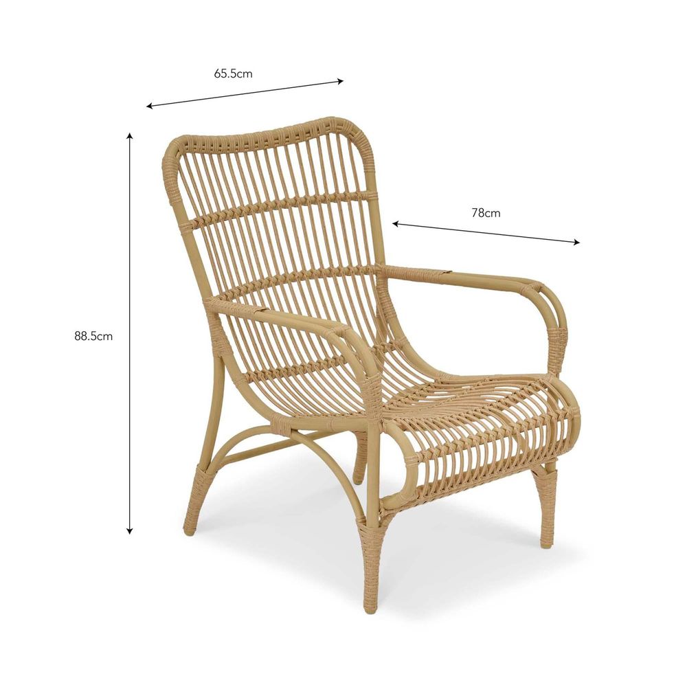 Item Code: EFCO28 Ideal for styling a patio, decking or conservatory, the laidback Corston Lounge Chair makes a stylish yet comfy addition to a summer entertainment space. Made from robust PE rattan, it's a relaxed piece that can be placed as a pair or individually in an inviting corner of the garden. Just add one or two of our scatter cushions for the ultimate place to curl up with a good book on a sunny day.Crafted from PE Rattan and Aluminium Plastic foot caps on legs.
