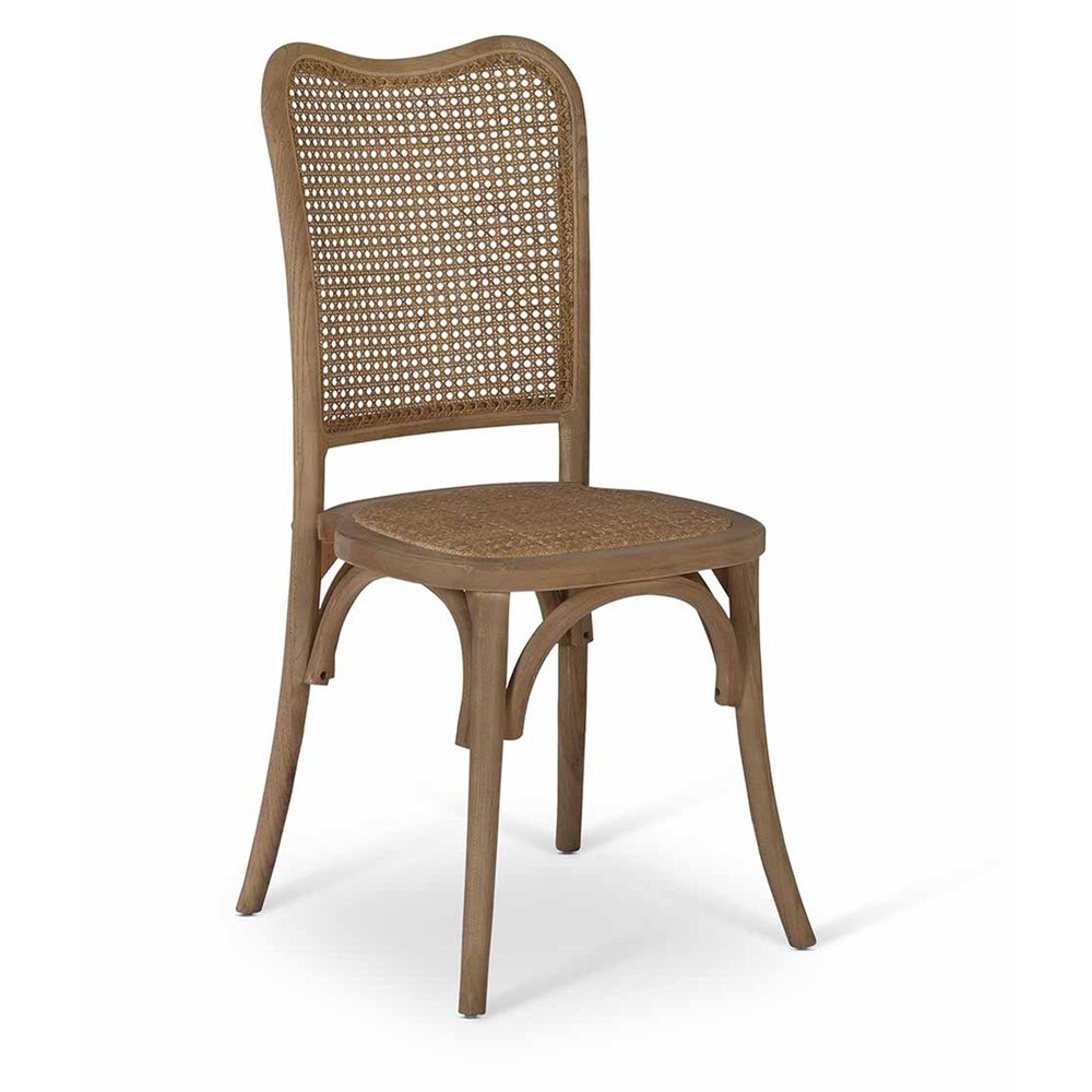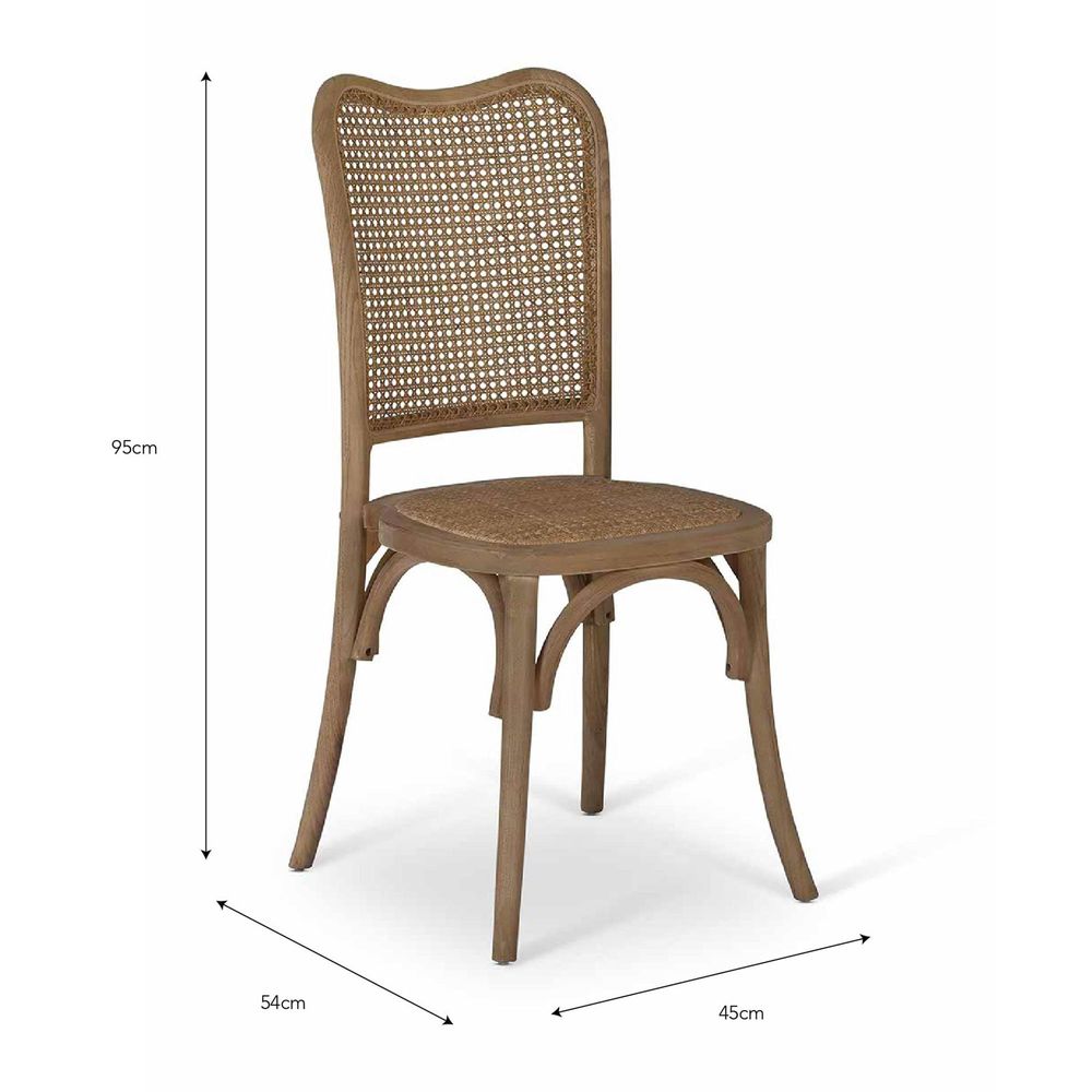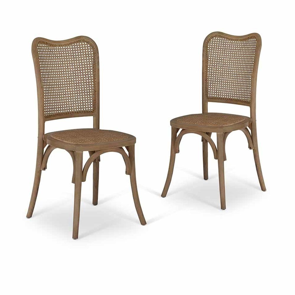 Item Code: XFGO690 Our elegant Fairlight Rattan Dining Chairs have a Parisian vibe to them, making them a chic choice for classic interior design schemes. Crafted from elm wood with a Grey Wax finish, these beautiful chairs have a comfortable rattan seat pad and back and would match a range of traditional dining table styles. Arriving as a set of two, they also look the part in the corner of a boudoir or around a cosy kitchen table.Crafted from Elm wood Fully assembled Plastic foot pads on legs Stackable Set of 2.