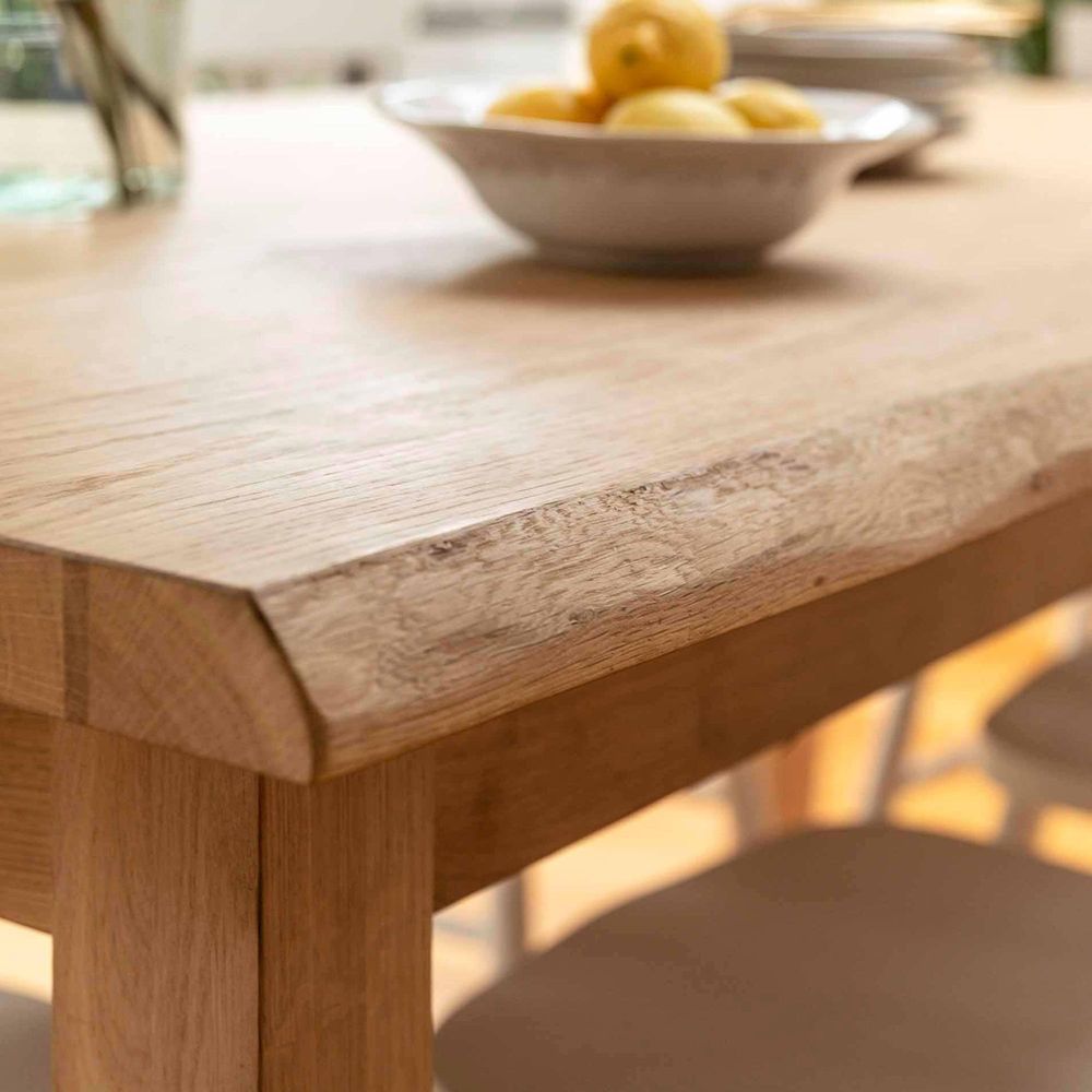 Item Code: SFHO419 Stylish in its simplicity, our Hambledon Oak Dining Table is one you'll gather around with friends and family for years to come. Crafted from solid oak, it's a piece that goes well with both classic and modern interior design schemes, while being sturdy enough to stand the test of time in a busy family home.The neat, unfussy design of the Hambledon Oak Dining Table makes it the perfect table for a farmhouse kitchen - yet it's also smart enough for dinner parties in the dining room. Its versatile design means you can take your pick from our variety of dining chairs to create the look you want. For maximum style points, team with matching oak furniture from our Hambledon range.Table top thickness: 4cm Table top overhang: 11cm Crafted from Oak Self-assembly required Care instructions: Wipe with a clean damp cloth to clean.