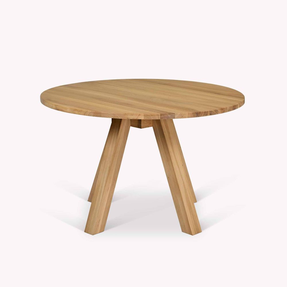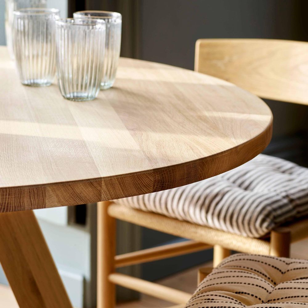 Item Code: SFHA1026 A welcome addition to our much-loved Hambledon range, the Hambledon Round Dining Table is crafted from solid raw oak in a simple, classic design that allows the texture and individuality of the wood to take centre stage. It will comfortably sit four people, and it's sure to become a homely place to gather around, whether it's placed in a dining room, a conservatory or the heart of the home - the kitchen.The wood used to create this stylishly simple table has been left untreated, meaning it can be painted or stained if desired. It pairs perfectly with other furniture from our Hambledon range, as well as with our Longworth Dining Chairs or new Ferndale Cross Back Dining Chairs. Just add a vase of flowers or a group of candlesticks.Assembly required (instructions included) Top has hardoil varnish. Other parts raw oak and not treated. Seats 4 Metal strut underneath table top for better support. Wood has not been treated, therefore can be painted or stained. Max weight - 50kgsCare Instructions:This product is made from Oak Wood. Wood is a natural material and natural colour variances may occur. To preserve its condition and avoid fading over time, avoid exposing your furniture to direct sunlight. Discolouration may occur and cause the wood to crack. We advise against the use of abrasive or corrosive cleaning agents as discolouration may occur. We recommend keeping your dining table away from heat sources like fireplaces or radiators - plus moisture - to prevent warping. Please do not drag the furniture, we recommend to always lift it to move, avoiding any breakages. In the event of any spills, wipe them immediately with a damp cloth. To prevent any damage to your table, we advise against the use of power tools to assemble. Always use place mats and coasters, to prevent scratching, heat rings and water marks. Do not place hot or cold items directly onto your furniture. We advise that two people assemble the product together. Parts can be heavy.