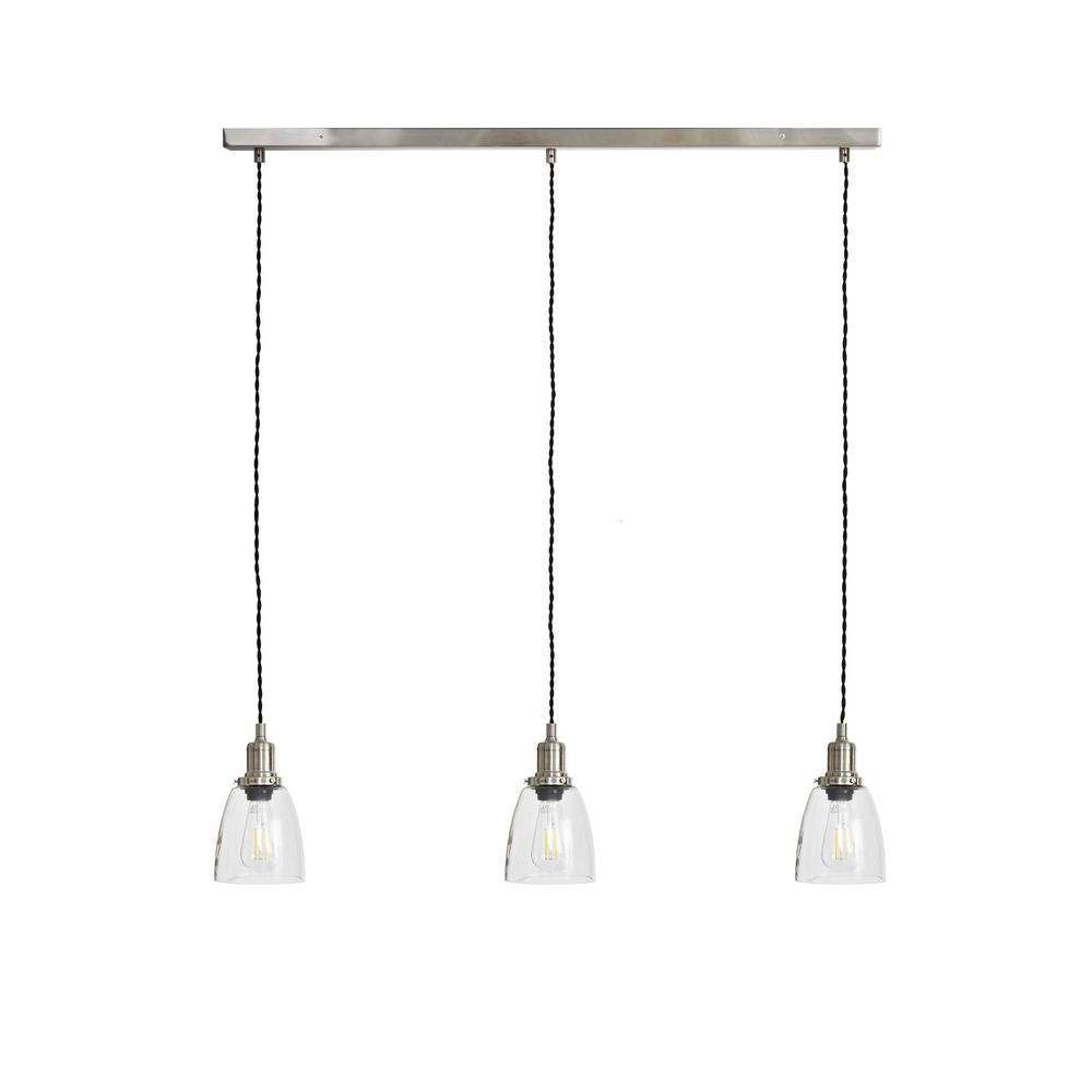 Item Code: LAHO17 When one Hoxton just isn't enough, we're bringing you three: the Trio of Hoxton Domed Pendant Light. Pick your spot: over a kitchen island or breakfast bar is our favourite. Choose the perfect height and adjust the cables. Create that focal point to enjoy that morning coffee or evening tipple. Oh and pick your finish: Satin Nickel or Antique Bronze.Please note that due to export restrictions we are not currently able to deliver this product to mainland Europe.Crafted in Glass Fittings in Satin Nickel or Steel in Antique Bronze Cable colour: Black Matching ceiling bar Not tested for use in bathrooms Class 1 Construction (Earthed) Requires 3x E27 bulb (not included) Max wattage: LED 10W Dimmer-switch compatible (if bulb in use is dimmable) Please note, due to the glass material some small air bubbles may be visible and cannot be avoided, yet this doesn't affect the functionality of the item.