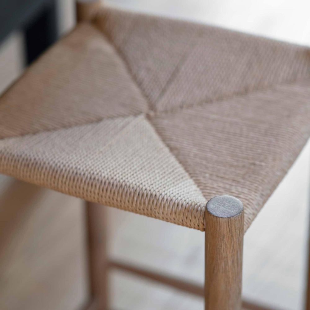 Item Code: FUOA67 The Longworth Bar Stool is perfect for a comfortable and elegant Scandinavian seating touch for the home. Crafted with an Oak frame and papercord weave seat, this indoor bar stool is a sturdy and stylish addition to kitchens bars. Modelled to pair perfectly with other designs from our Longworth Collection.Crafted in Oak Seat is Papercord Weave For indoor use only Fully-assembled.