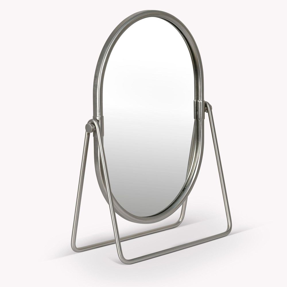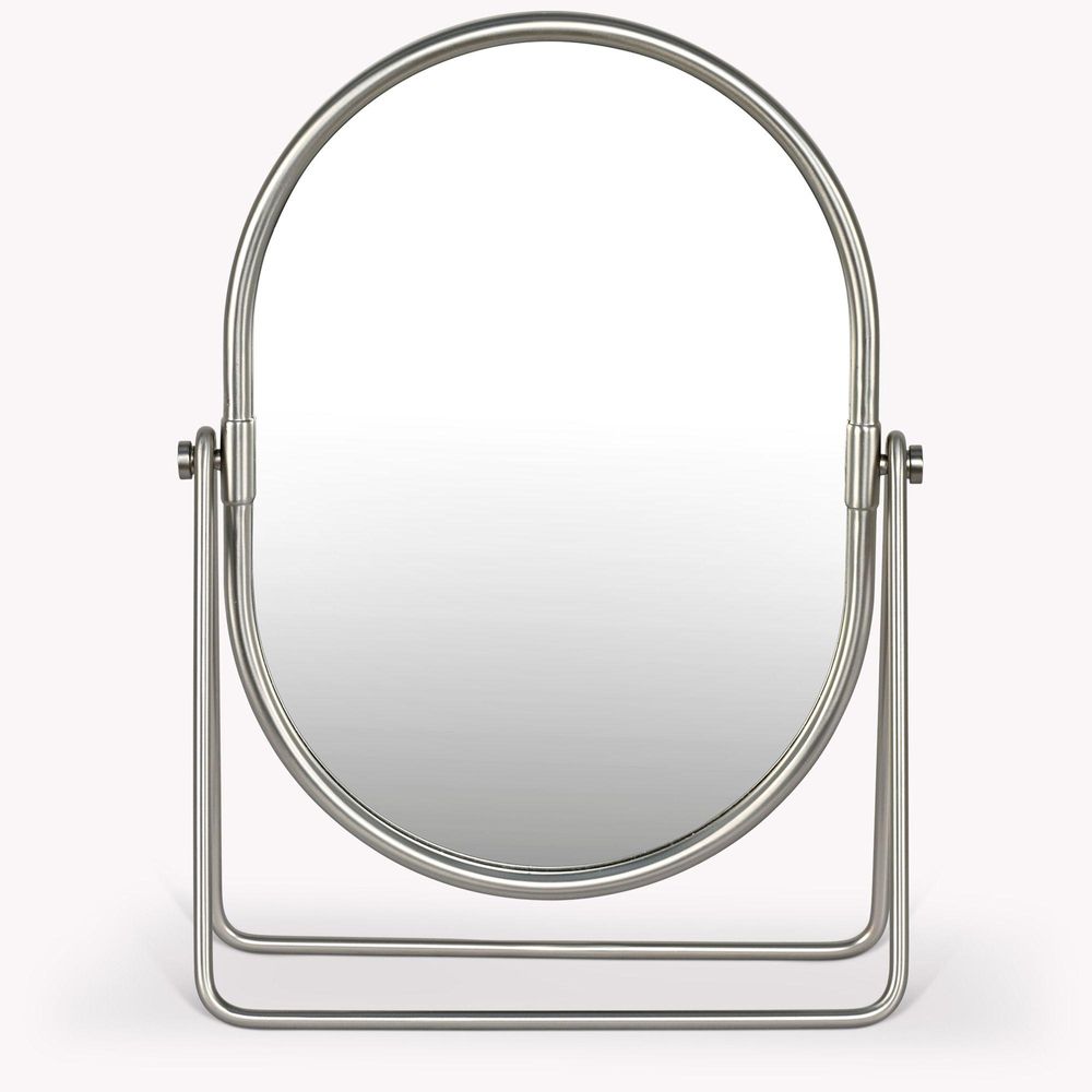 Item Code: UHNO340 The Novello Vanity Mirror makes an elegant feature for a bathroom or a decadent choice of mirror for a dressing table or vanity unit. Easily tilted to get the right angle whether youre seated or standing, this mirror is great for placing by a window to take advantage of natural light. This new antique pewter colourway matches other items in the Novello range for a unified look, and its also available in antique brass.Made from Zinc Alloy, Aluminium, Stainless Steel, Iron and Glass Brushed Nickel Finish. Mirror Tilts.