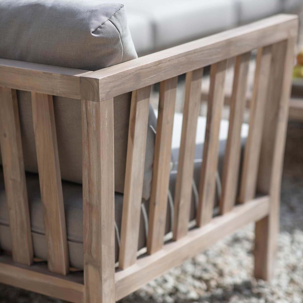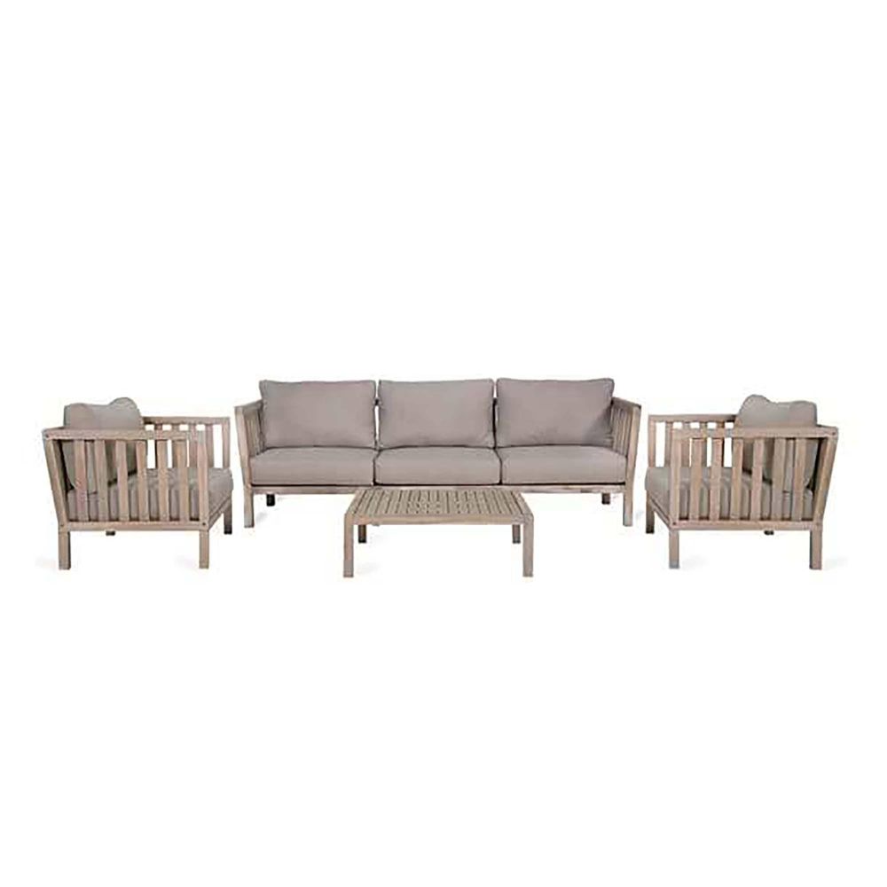 Item Code: FUAC14 The Porthallow collection is designed for sophisticated garden entertaining and relaxing. Our Porthallow 3 Seater Sofa Set features a large sofa, two armchairs and accompanying coffee table. This generous selection is perfect for those looking to create an idyllic space for hosting and enjoying time outdoors with friends and family. Our paler whitewashed acacia wood frame and soft grey cushions will stylishly complement garden and patio areas for days spent in the sun.uitable for indoor and outdoor use Fully-assembled (Excluding the Coffee Table which requires assembly) Crafted in Acacia Wood Weatherproof Oak wash oiled finish Cushions are Polyester Cushions are showerproof Cushion covers are removable and washable at <30C In harsh weathers or during the winter months, remove cushions from the frame and store in a dry place We recommend that all outdoor furniture is covered or stored under cover if left outside for long periods of time or during the winter months Ensure that the furniture is completely dry before covering.