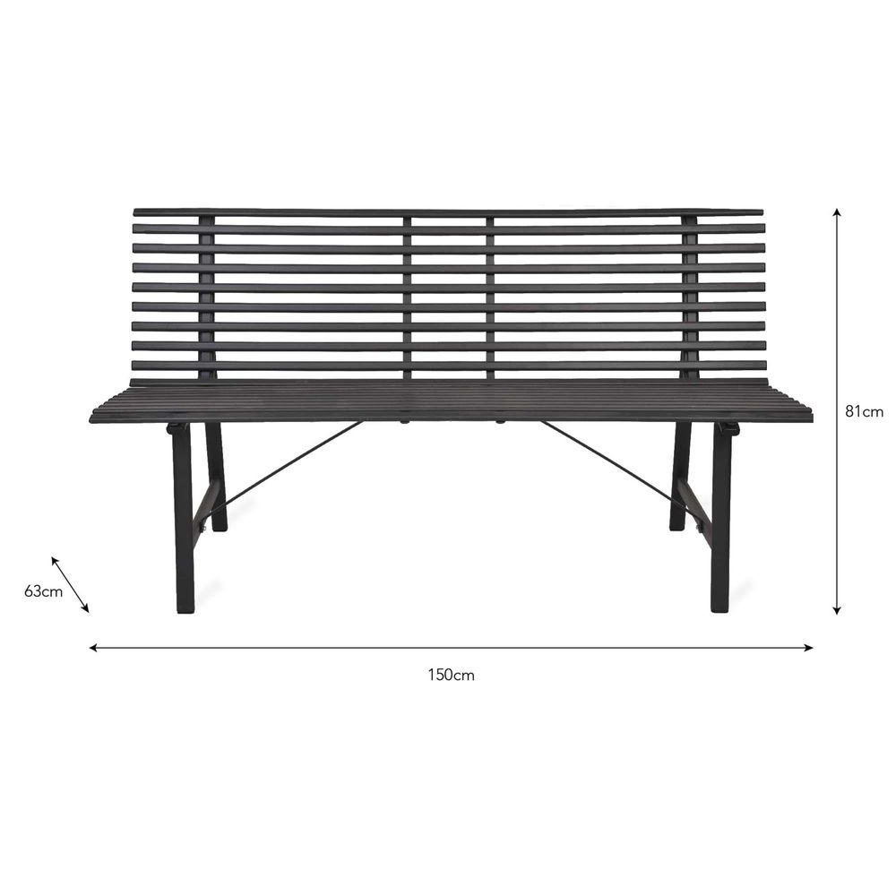 Item Code: BECN02 Inspired by London's parks and green open spaces the Richmond Bench is perfect for sitting with a book or newspaper in the comfort of your own garden. Where our Bistro Bench is lightweight and foldable, the Richmond is sturdier and more substantial. Position on the patio, along the garden path or under a window. And why not match with one of our Bistro Tray Tables (you'll need somewhere for that cup of tea after all).Crafted in Powder Coated Steel Colours: Foliage Green, Carbon or Pomegranate Matt finish Suitable for indoor and outdoor use Assembly required (instructions included) Weatherproof Weight limit: 200kg We recommend that all outdoor furniture is covered or stored under cover if left outside for long periods of time or during the winter months Please note that outdoor furniture pieces may be susceptible to rust when exposed to coastal environments Ensure that the furniture is completely dry before covering.