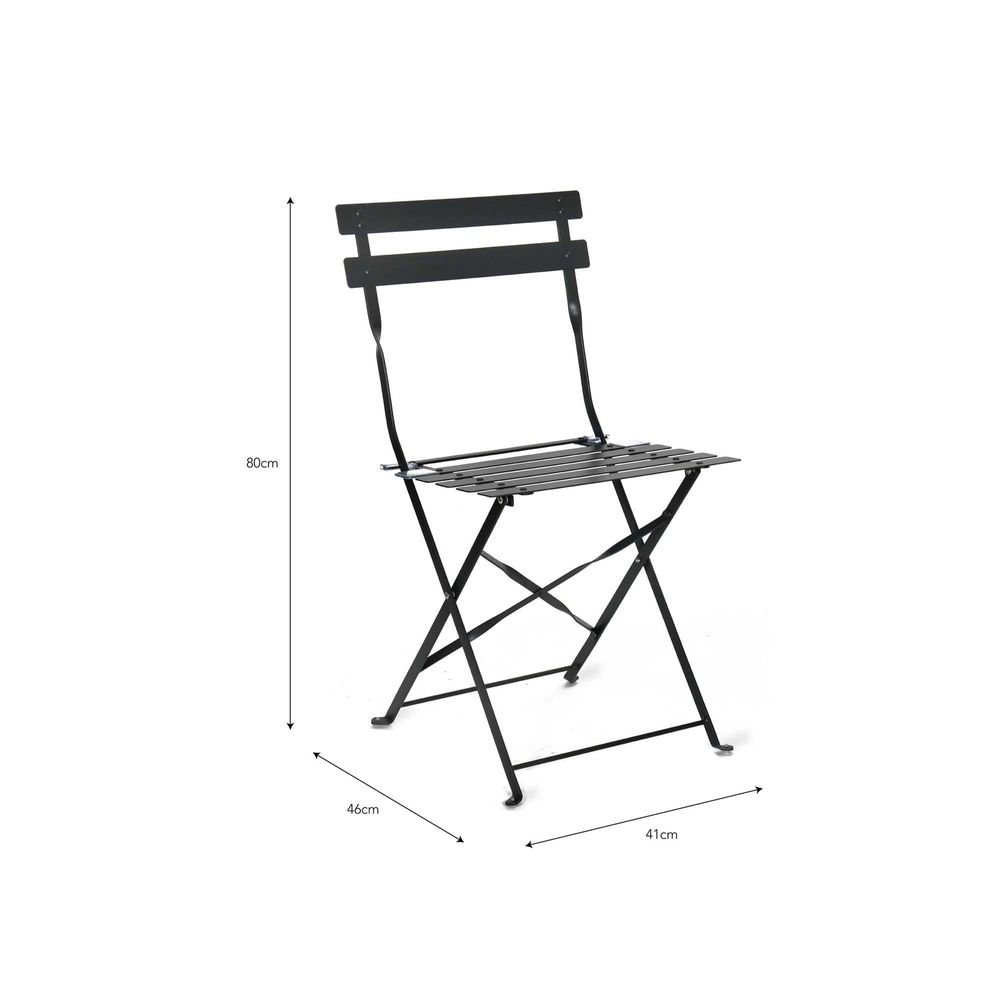 In need of extra seating? Fancy mix and matching to create your own colour combo? Or are you looking for alternative dining table seating? Look no further than our Pair of 2 Bistro Chairs. They come in a choice of colours, from calming neutrals to bright summery tones (we like to think there's a colour for everyone). Oh, and did we say they're fully foldable, making them super easy to store away when not in use. Style alongside the matching large Bistro Tables to complete the set.Crafted in Powder Coated Steel Colours: Chalk, Clay, Carbon, Forest Green, Greengage, Ink, Cove Blue, Lemon, Pomegranate Fully assembled Suitable for indoor and outdoor use Weatherproof Set folds flat for easy storage Weight limit: 120kg We recommend that all outdoor furniture is covered or stored under cover if left outside for long periods of time or during the winter months Ensure that the furniture is completely dry before covering.