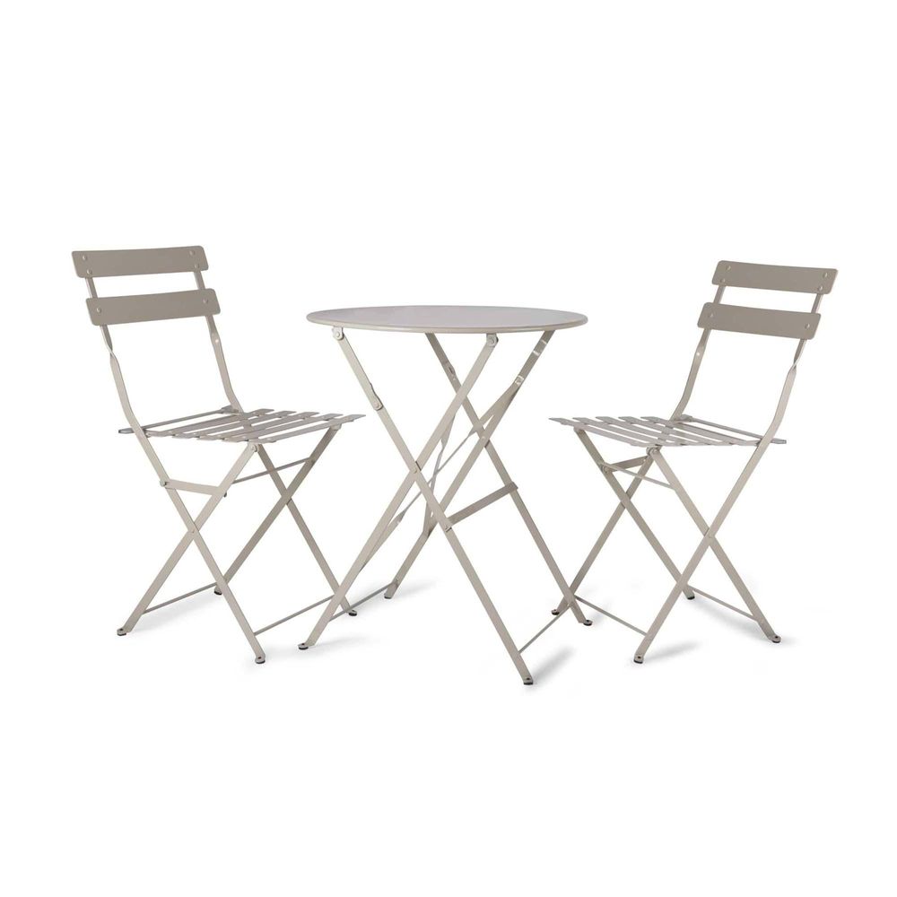 Item Code: RDCL02 Our classic French inspired Rive Droite Bistro Set is designed for any sized space, from courtyards to patios and balconies. Fully foldable and available in a wide choice of colours, you can go simple and neutral or bright and bold. Great for that first cup of tea or spot of lunch, why not use indoors too in the conservatory or kitchen.Crafted in Powder Coated Steel Fully assembled Suitable for indoor and outdoor use Weatherproof Set folds flat for easy storage Weight limit: Chair 120kg, Table 40kg We recommend that all outdoor furniture is covered or stored under cover if left outside for long periods of time or during the winter months Please note that outdoor furniture pieces may be susceptible to rust when exposed to coastal environments Ensure that the furniture is completely dry before covering.