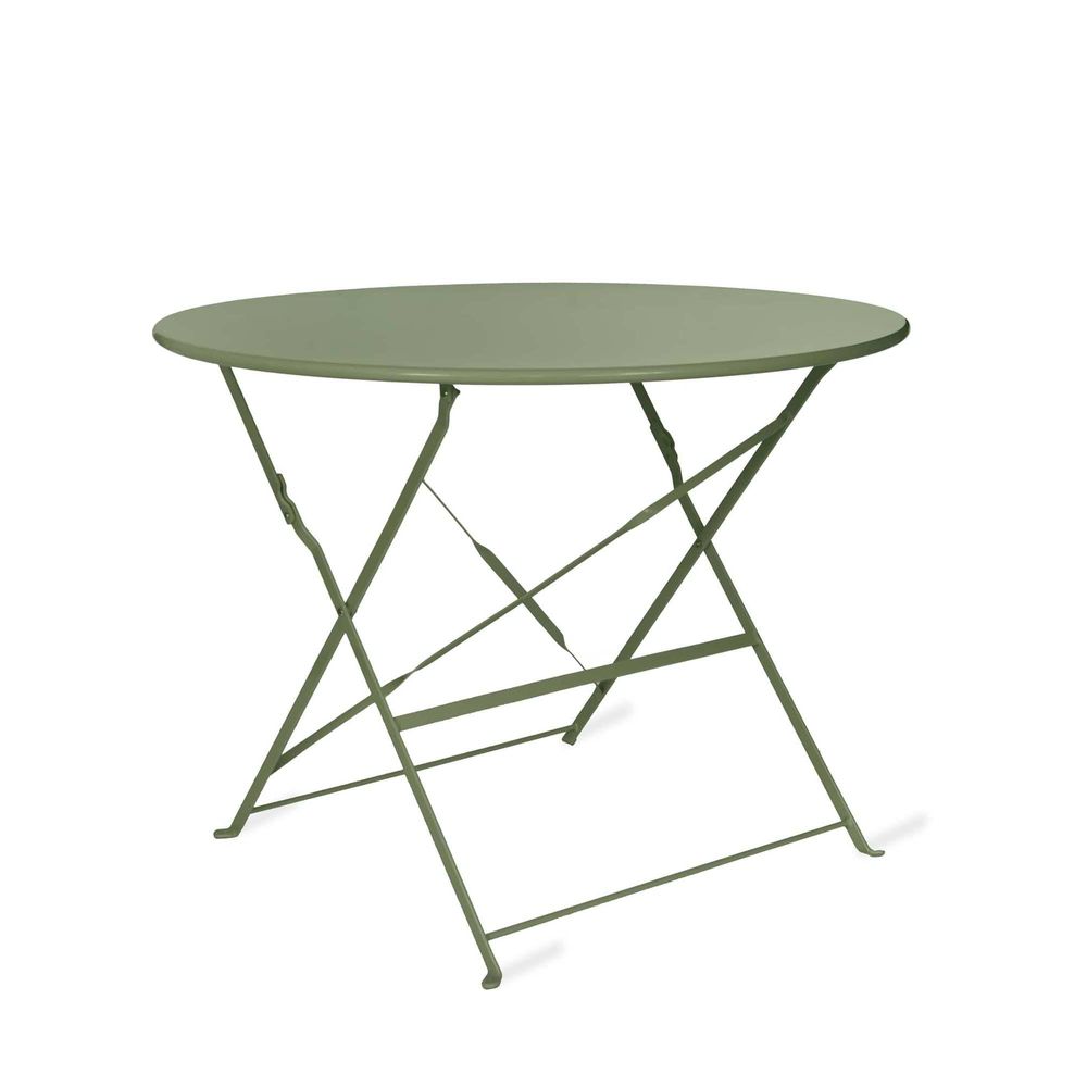 Item Code: RDTG04 Our much-loved Rive Droite Bistro Table returns in a gorgeous thistle green colourway. The perfect size for four people, this large Paris-inspired bistro table will complete a courtyard, patio or terrace with unbeatable style. Available in a range of lovely colours, it folds neatly away for winter storage and when you need to free up space in the garden. All that remains is to choose some chairs to go with it from our sets of two matching Rive Droite Bistro Chairs: pair it with the thistle green, or go bold with a range of colours.uitable for indoor and outdoor use Weatherproof Set folds flat for easy storage Maximum Table Weight: 40KG We recommend that the table is covered or stored under cover if left outside for long periods of time or during the winter months. Please note that outdoor furniture pieces may be susceptible to rust when exposed to coastal environments. Ensure that the furniture is completely dry before covering.