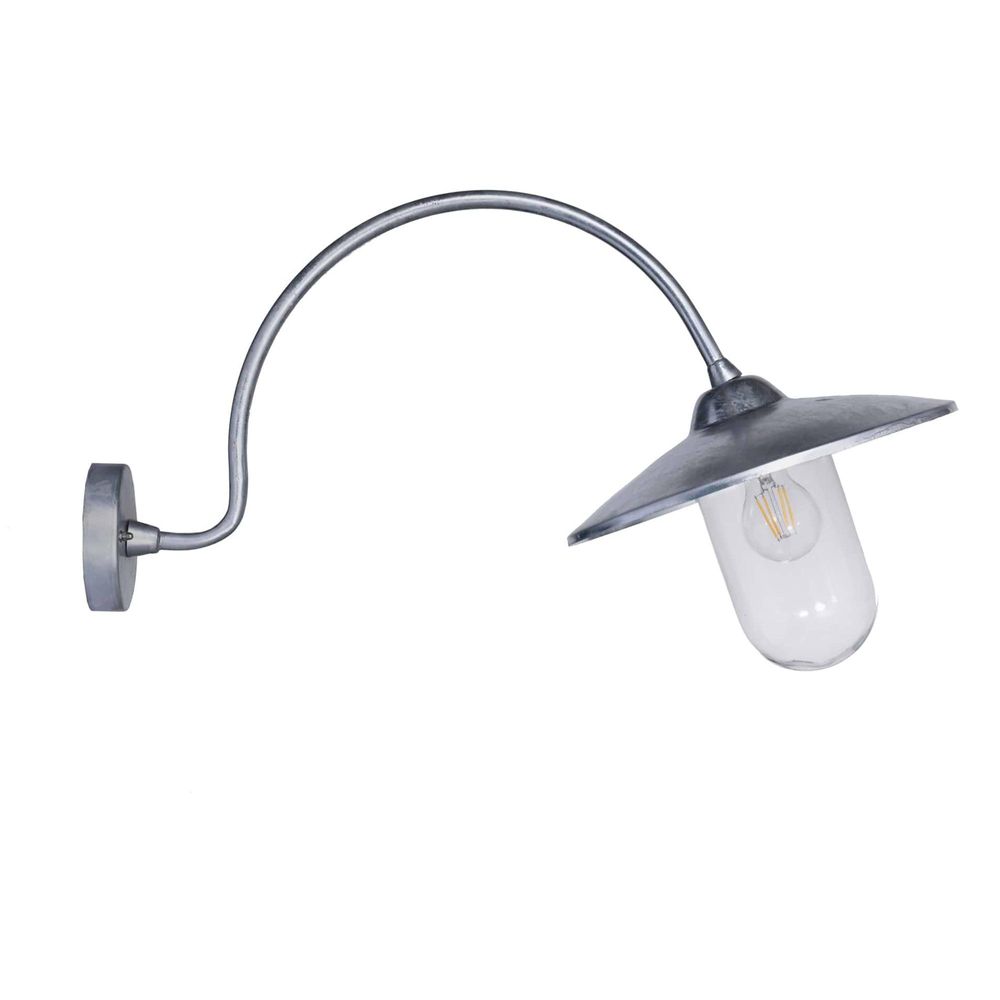 Item Code: LAHP33 Taking inspiration from lighting seen on French farmhouses, the St Ives Arched Swan Neck Light is graceful and eye-catching. Produced in Hot Dipped Galvanised Steel, the light is fully weatherproof even in coastal locations.Designed for homes with wisteria, climbing plants, the high arch will allow leaves, flowers and foliage to weave across the house whilst not obstructing the light itself. We think it would look perfect singularly or as a duo either side of a doorway and can be also be linked to a motion sensor to light up pathways.Please note that due to export restrictions we are not currently able to deliver this product to mainland Europe.Shade: Diameter 30cm Back plate: Diameter 11cm Full depth: 63cm Crafted in Hot Dipped Galvanised Steel Weatherproof IP44 rated for outdoor and bathroom use Class 1 Construction (Earthed) Motion-sensor compatible (not supplied) Requires 1x E27 bulb (not included) Max wattage: LED 10W.