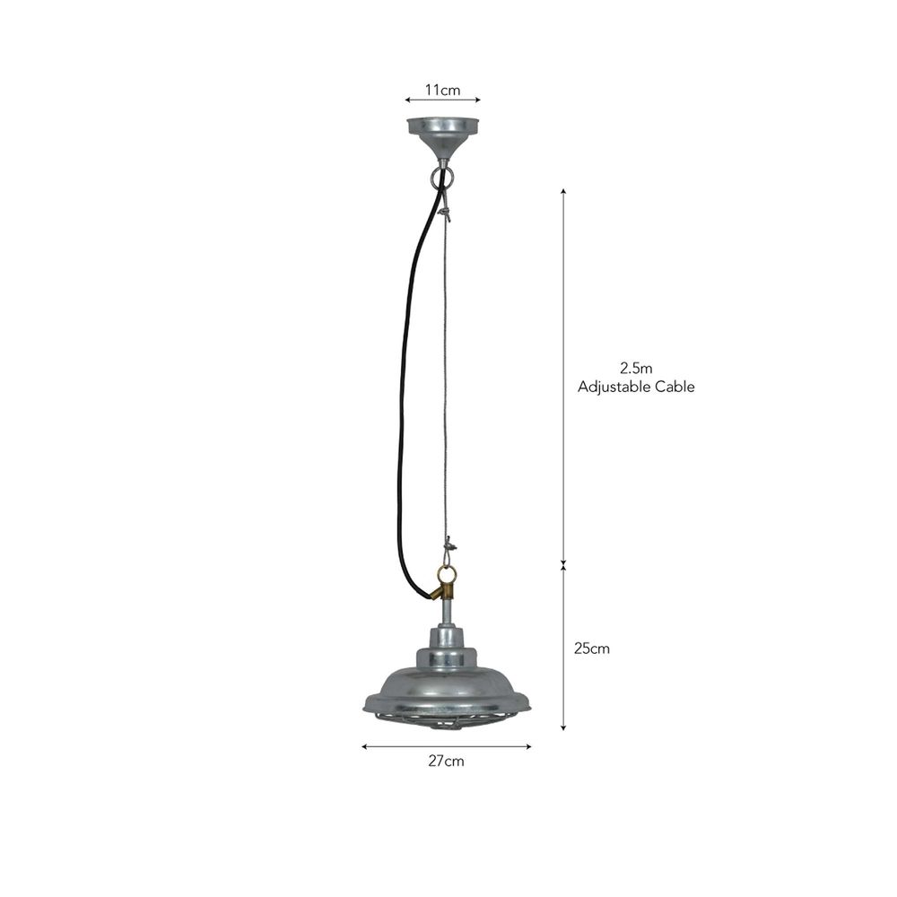 Item Code: LAHP42 The St Ives Mariner Outdoor Pendant will add that finishing touch to any outdoor space. Featuring a Galvanised Steel shade and cage, both are dipped in molten zinc during production to create the rustic Hot Dipped Galvanised finish. This ensures the light is fully weatherproof even in coastal locations. We've added the raw cast Brass connector which contrasts beautifully against the metallic shade.Inspired by nautical lighting found on naval ships the interesting layered shade would look eye catching over a kitchen island, in a porch or over an outdoor dining table. The pendant comes with an E27 fitting which is protected by the inner glass shade. The ceiling light is IP44 rated for outdoor use and comes with 2.5 metres of adjustable cable to hang at the required height.Please note that due to export restrictions we are not currently able to deliver this product to mainland Europe.Crafted in Hot Dipped Galvanised Steel and Brass Cable: Black Tubing and Wire Matching ceiling rose Weatherproof, including coastal locations IP44 rated for outdoor and bathroom use Class 1 Construction (Earthed) Motion-sensor compatible (not supplied) Requires 1x E27 bulb (not included) Max wattage: LED 10W If fitting onto a narrow beam (smaller than the diameter of the ceiling rose) either use a blanking plate or seal the ceiling rose with silicone. This will ensure the fitting stays watertight.