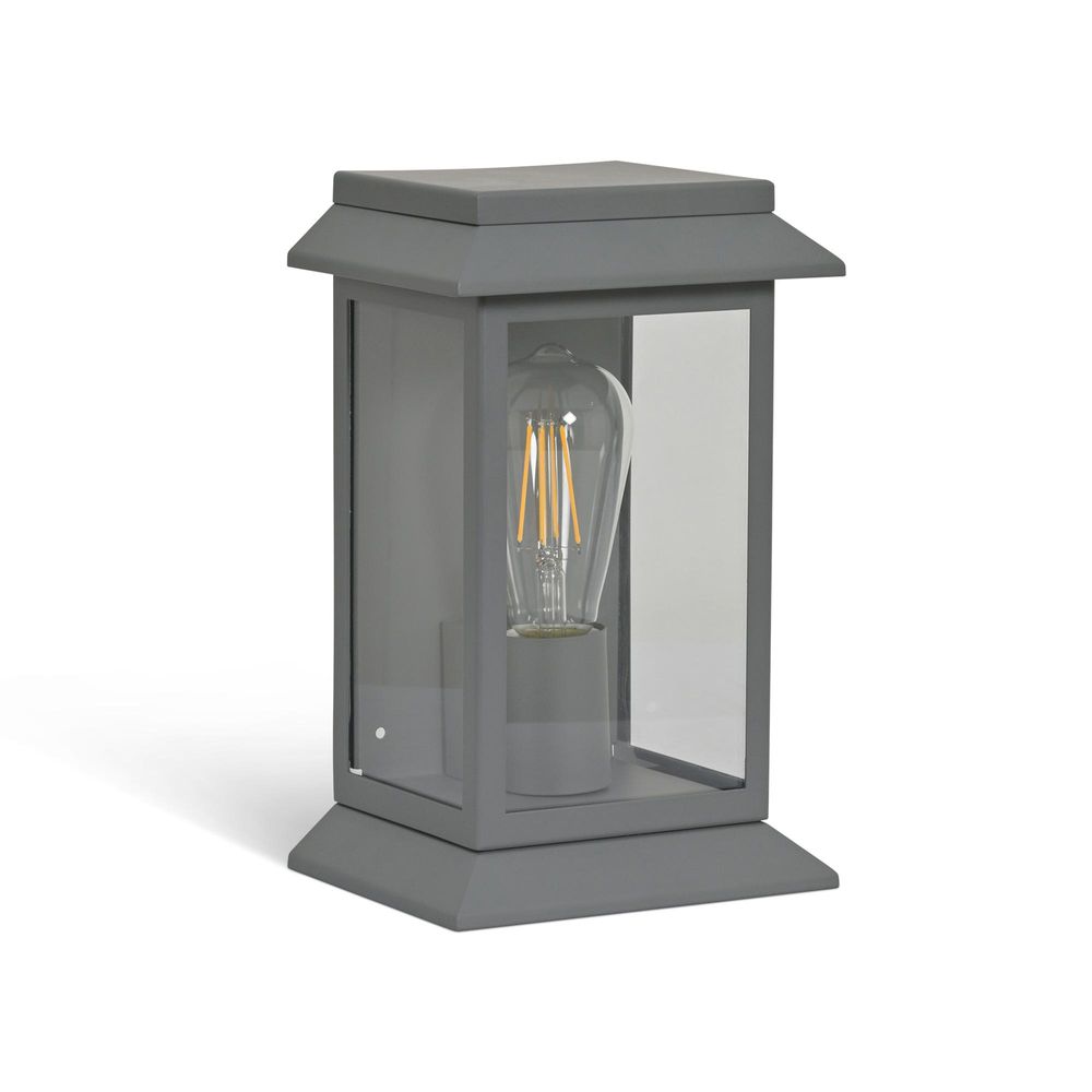 Item Code: FST902 Our supremely stylish, lantern-inspired Stourton Wall Light is garden wall illumination at its finest. This classic design is made from charcoal-coloured powder-coated steel in a matte finish and framed in glass. It will add a classy note to a porch or terrace, as well as creating a romantic ambience on a garden walkway. Also available in Antique Bronze and Carbon.Recommended bulb: x1 E27 LED Max 10W (not included) Material: stainless steel and glass.