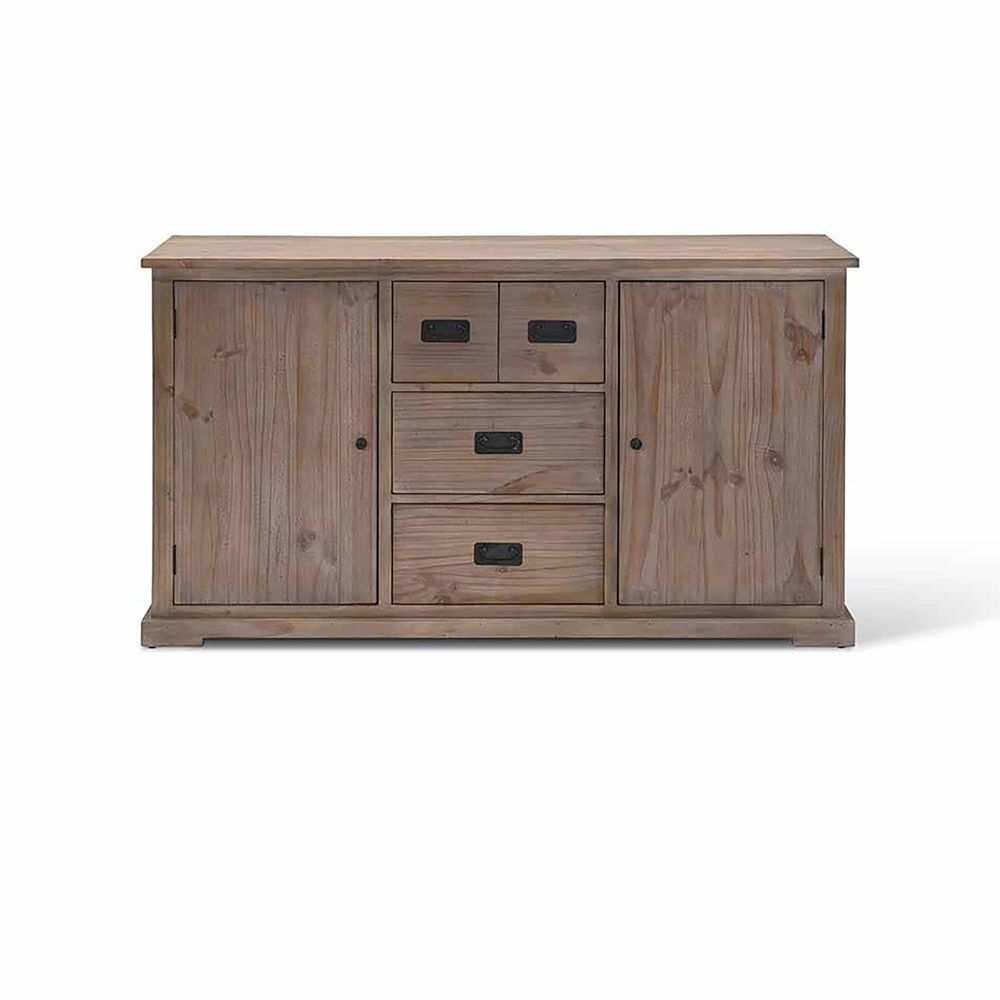 Item Code: CFTO13 Complete a dining room, kitchen or living room with our large Topsham Sideboard. With two spacious cupboards, two small drawers and two bigger ones, this attractive unit has plenty of room for storing everything from crockery and glassware, to board games and cocktail ingredients.Crafted from recycled pine and finished with dark handles, the Topsham Sideboard is supplied with an anti-tip kit to keep it firmly upright. Style it with a statement lamp or vase of flowers, and pair with matching furniture from our Topsham range to complete the look.Drawer dimensionsSmall:W 100cm x D 40cm x H 120cmLarge:W 160cm x D 45cm x H 90cmMax weight drawers can hold: 15kg Internal drawer sizes:Small:W 19cm x H 30.5cmLarge:W 44cm x H 30.5cmDoor size:W 46cm x H 75cmTable top height:3cm Maximum weight limit shelves can hold: 25kg Crafted from reclaimed Pine Fully assembled Anti Tip kit included Drawers on wooden runners with wooden stoppers Drawers have Antique Brass Monarch handles Non-adjustable interior shelves