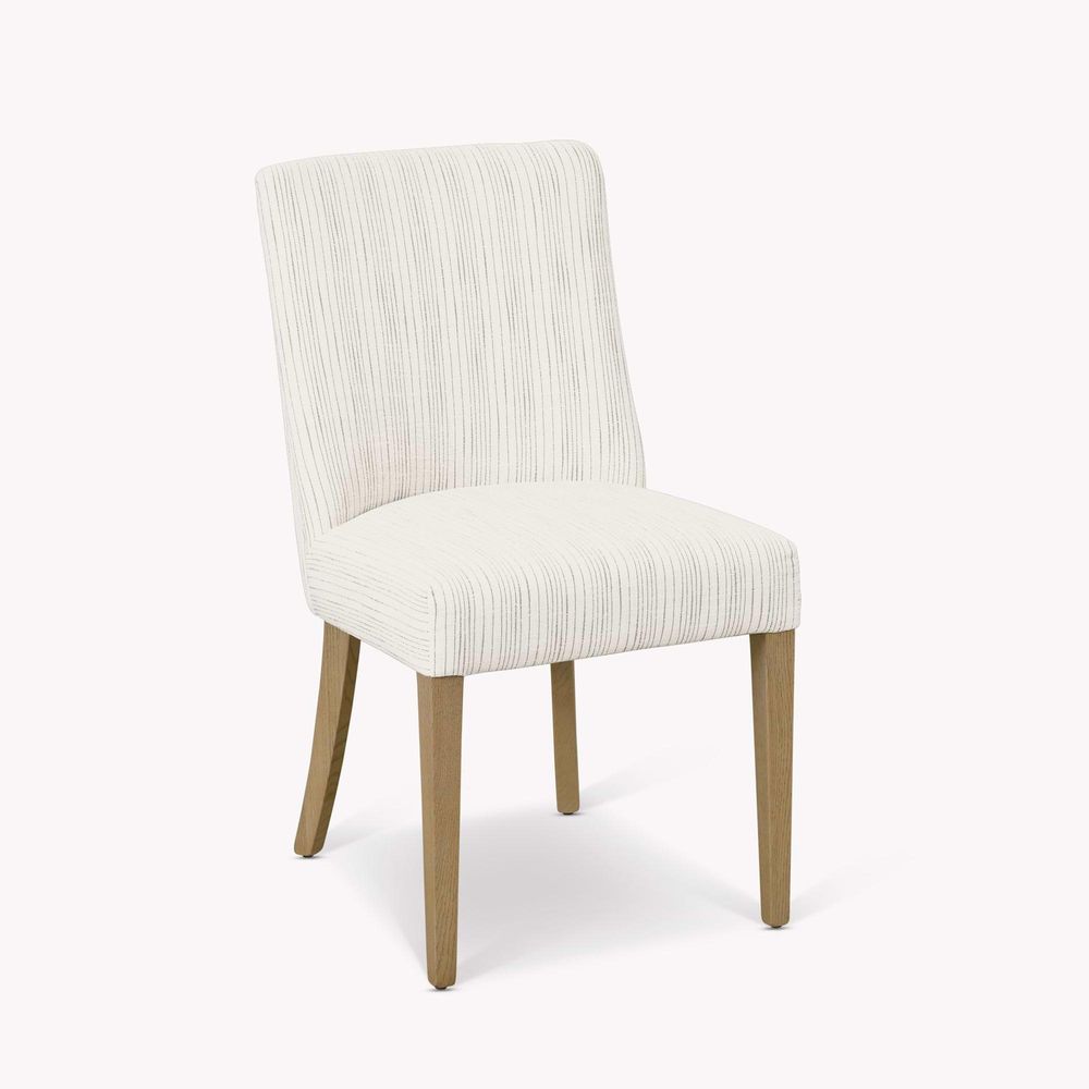 Item Code: PFWR698 A piece that will pair well with both traditional and contemporary homes and a range of kitchen and dining tables, our Wray bury Dining Chair is a true classic. Its textured fabric features a stylish pale khaki stripe that will complement a range of colour palettes, while the seat pad is a comfy place to sit for long lunches and dinner parties alike. This set of two is finished with stylish studs down the side and solid ash wood legs. Its versatile design means it could also be used to style a cosy corner of the bedroom or study.Upholstery care instructions: Wipe with a soft, dry cloth. Vacuum upholstery once a week with a brush attachment feather/down cushions can be cleaned using a soft brush to clean the fabric. Keep upholstery away from heat and moisture. Never expose upholstery to direct sunlight as fading and discoloration may occur. Professionally clean your upholstery once a year.Wood care instructions: Do not spill water over the chair for cleaning. Excess water causes the wood to swell, warp or stain. Keep the furniture away from direct sunlight, as sunlight causes it to fade away and crack. Pull the furniture away from heat sources like fireplaces or radiators to prevent the furniture from warping. Avoid exposing the furniture to alcohol, deodorants, perfumes, nail paints as any exposure may harm the finish of the wood.