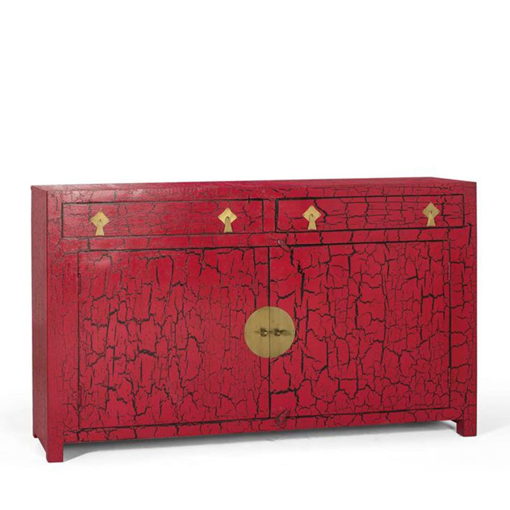 Item Code: 1899 Japanese-style sideboard with an elegant distressed blue lacquer finish that gives the surface a worn effect.The sideboard features multiple doors and drawers, offering plenty of storage capacity, its clean, simple lines reflect the typical Zen aesthetic of Japanese design. Antique gold hardware adds a sophisticated contrast.