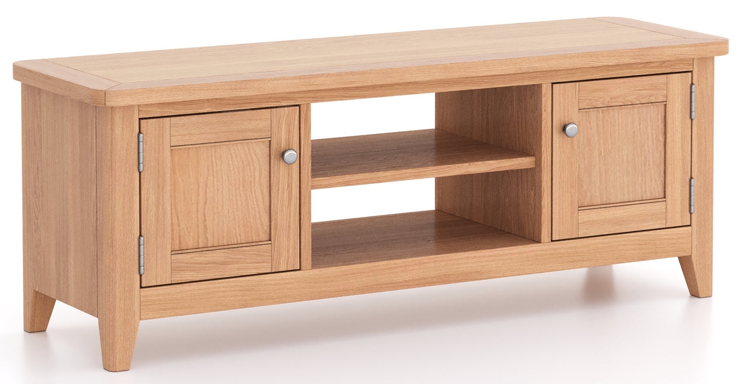 Item Code: YNOK-06 Homes with large, or widescreen TV's, the Arden oak Wide TV Cabinet is a must-have. Ensuring your TV is the centre of attention, and focal point of the room, this extra-large TV cabinet benefits from all the space you need to ensure unsightly cables, consoles, and even home routers are neatly hidden away from view.