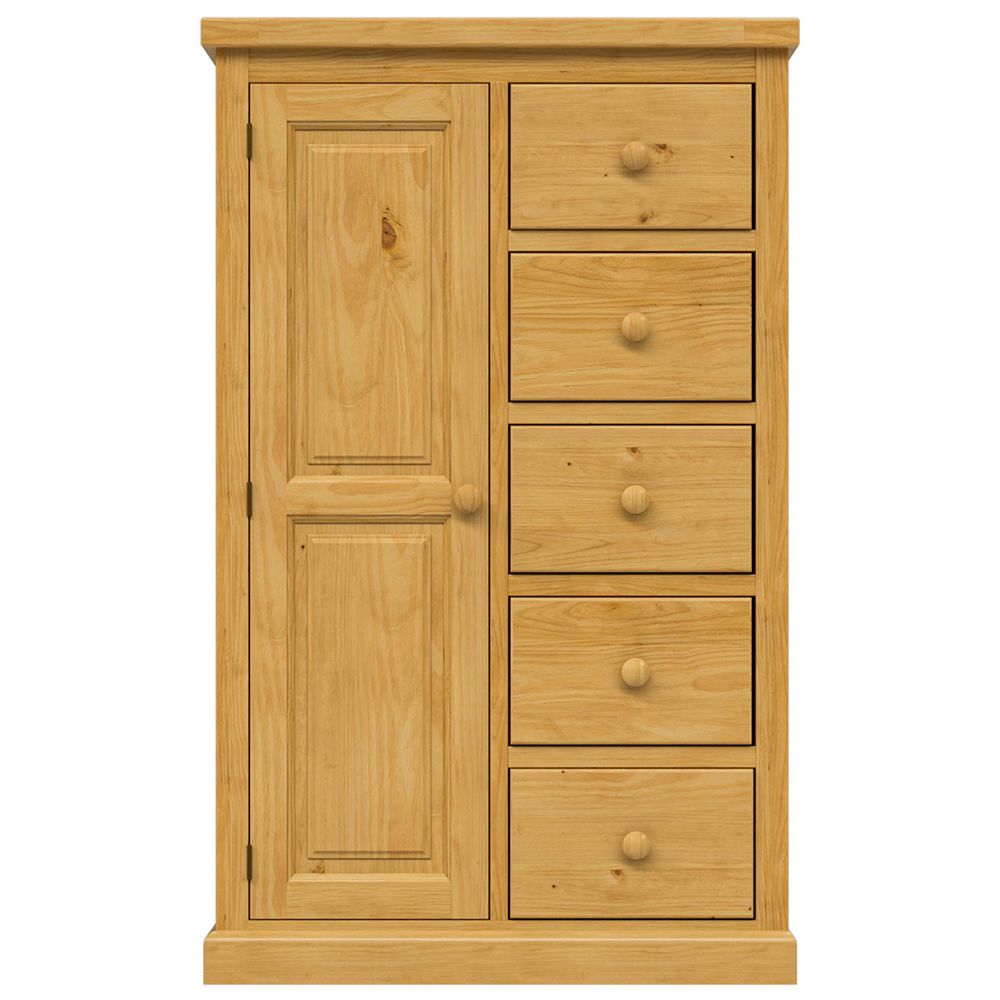 Churchill Wardrobe - 1 Door 5 Drawer - Combination - Waxed Pine