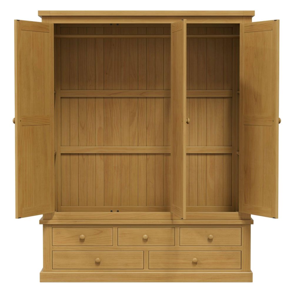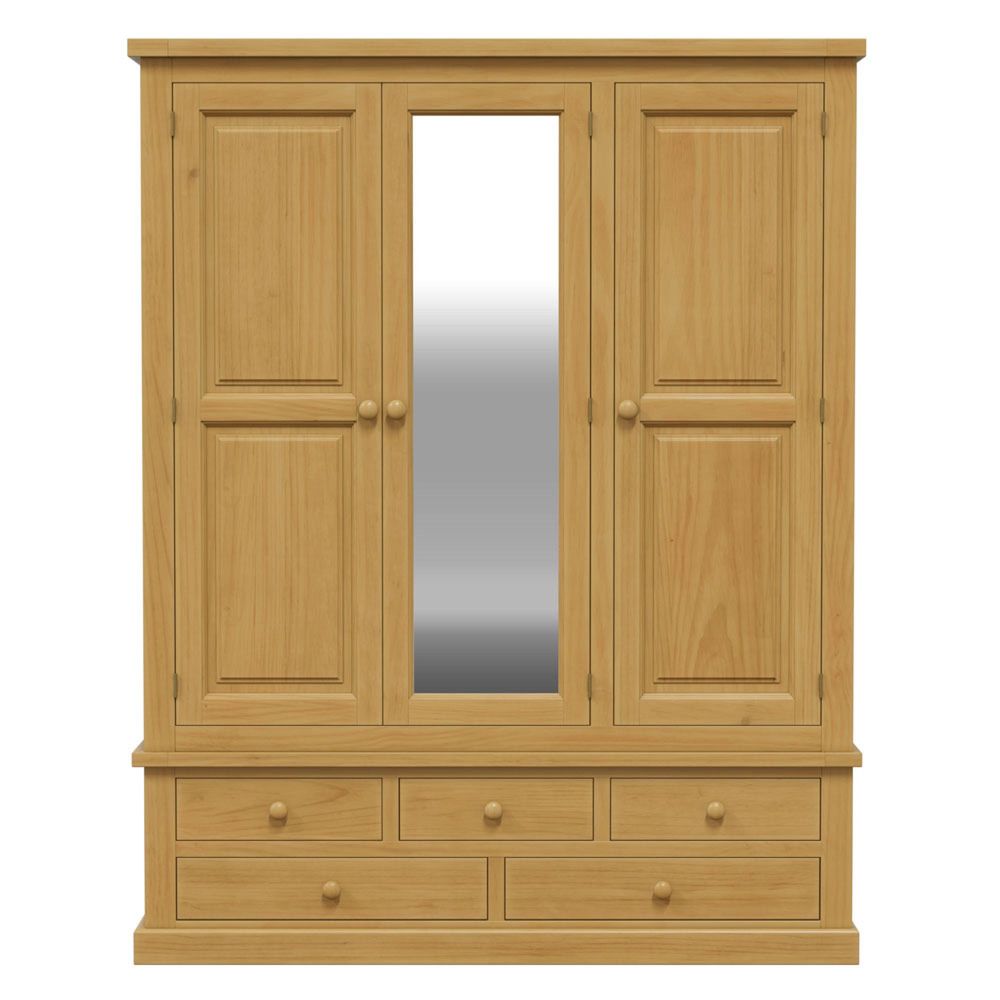 Item Code: CKP-21 The largest of the Churchill Pine wardrobes. This triple width wardrobe with mounted center mirror provides a large amount of clothes hanging space as well as storage space in the five drawers below.