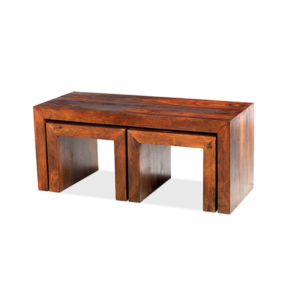Cube Sheesham Nest of 3 Coffee Tables