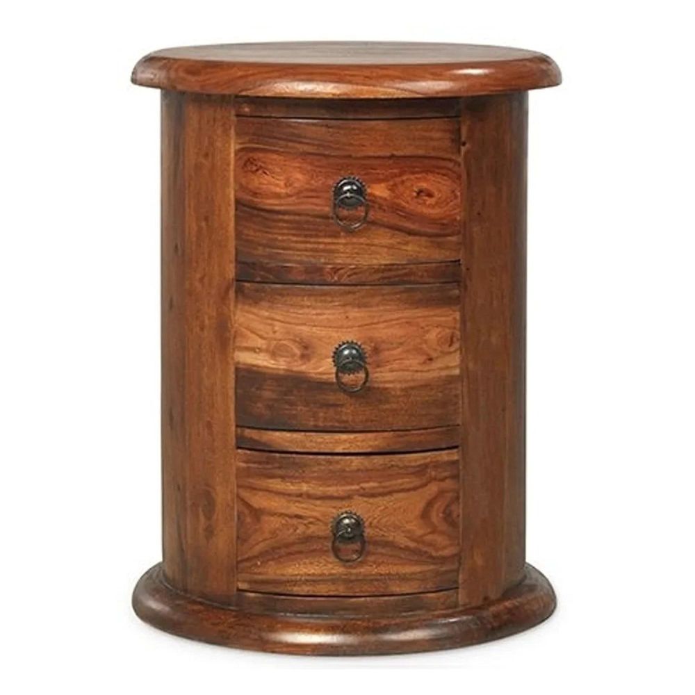 Item Code: SH-040 Traditional Indian storage chest with a cylindrical design and three drawers. The chest is suitable for use in any room in the home and is also available in slim five drawer and oval versions.