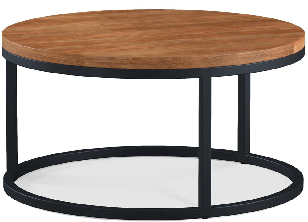 Item Code: DA-14 For teacups and tablets books and remote controls possibly even somewhere to put your feet up this round coffee table combines modern elegance with industrial design for a head-turning piece that will sit in front of the sofa in any style of home. Crafted from solid acacia wood its dark tones and rough-sawn appearance are shown at their natural best through a matt lacquer finish. And to ensure it stands the test of time this chunky-topped table sits smartly on a strong black metal frame.
