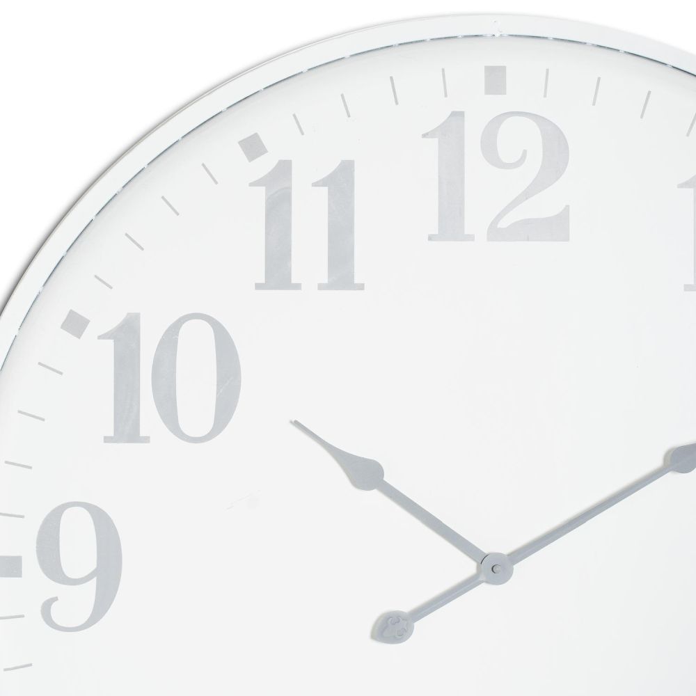 Item Code: 21628 This white metal wall clock is the perfect addition to any room. Featuring a large design and high-quality materials, this clock will add an elegant touch. Let the sturdy casing and crystal clear hands complete your space with an air of sophistication. It comes assembled, so all you need to do is hang it up and enjoy.