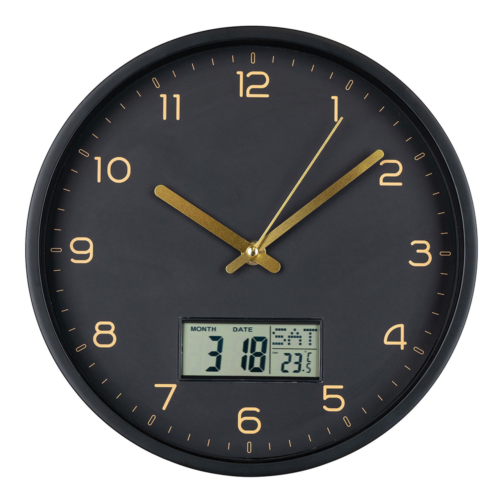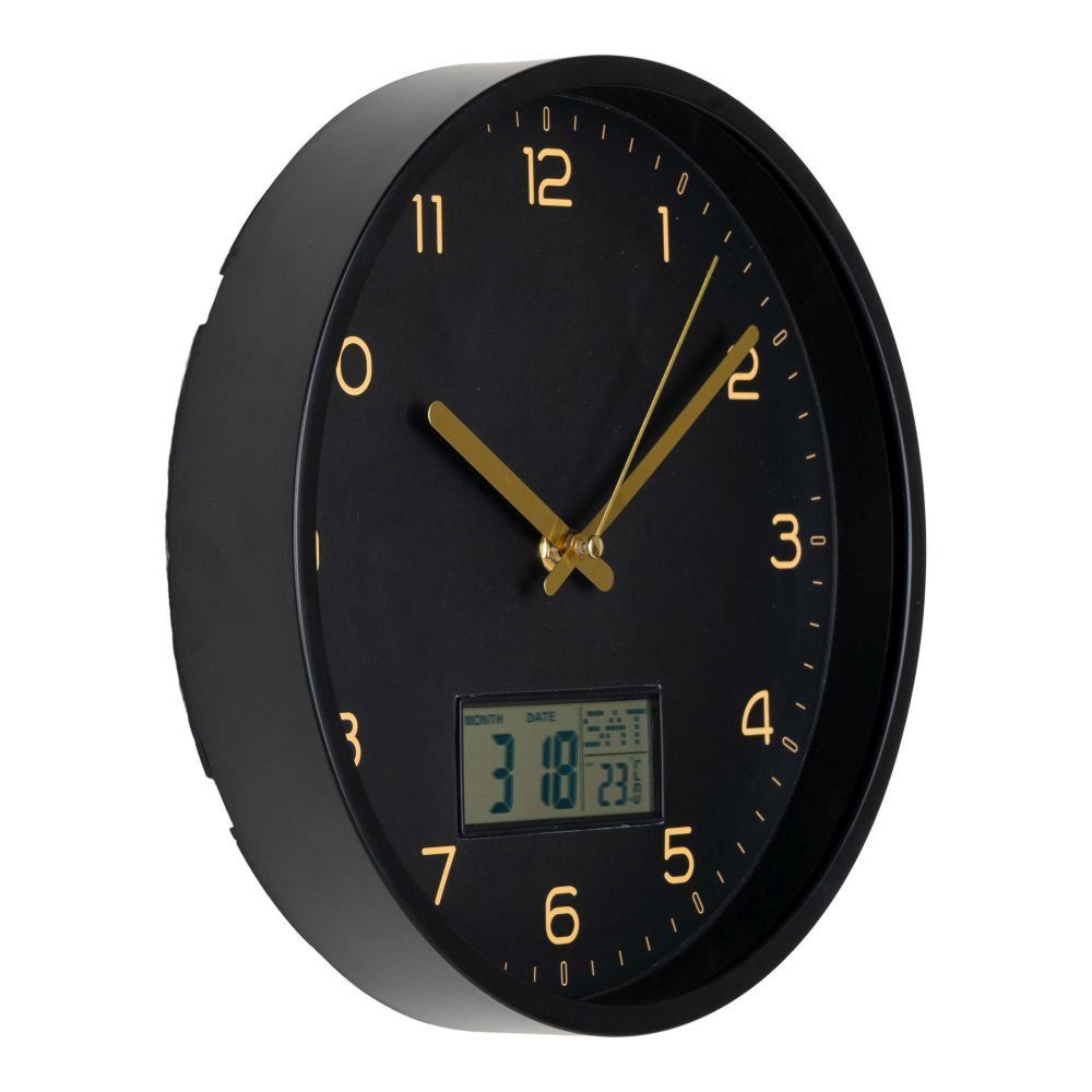 A discreet digital display adds a practical touch, showing temperature, date, and day of the week—perfect for home offices, kitchens, or living spaces where both style and functionality matter. Compact yet striking, the Amiens clock combines refined design with everyday convenience.