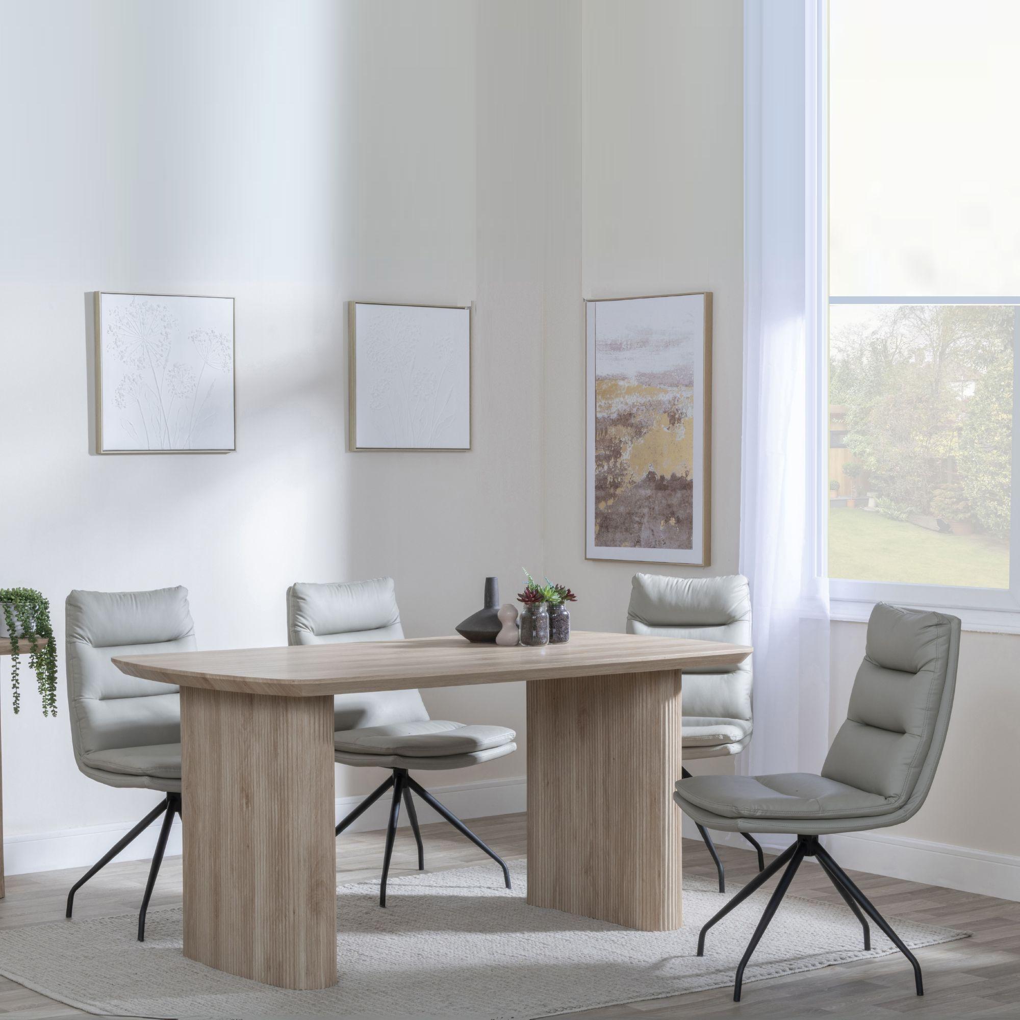 Bern Fluted Dining Set - 6 Seater - 160cm - Oak - Diego Swivel Dining Chairs - Beige Leather