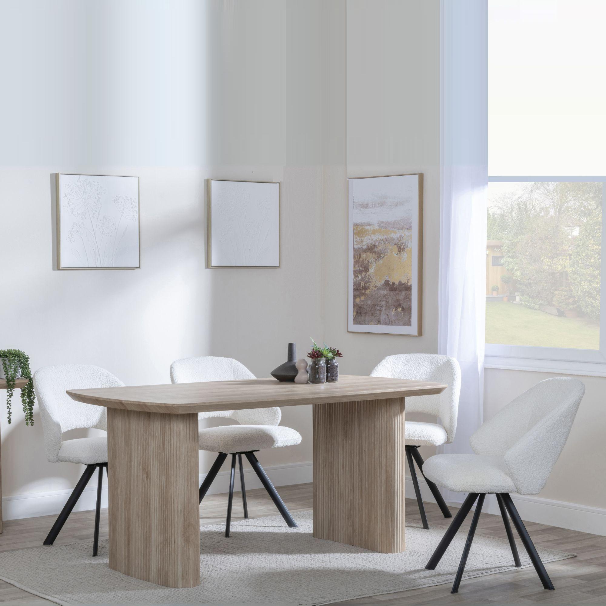 Bern Fluted Dining Set - 6 Seater - 160cm - Oak - Ion Swivel Dining Chairs - Cream Boucle Fabric
