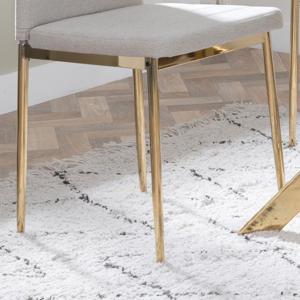 The Lido Dining Chair in sand-coloured fabric and gold-finished metal legs brings a refined sense of warmth and sophistication to any dining space. Upholstered in soft, high-quality fabric, this chair pairs timeless design with practical function, making it as suitable for daily dining as it is for special gatherings.