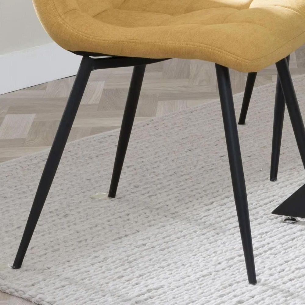 Brighten up your dining space with the Corona Dining Chair in rich yellow fabric, a refined blend of modern design and everyday functionality. Upholstered in a soft touch fabric, this chair combines ergonomic comfort with a visually striking square stitched backrest. The warm yellow tone introduces a fresh, welcoming character to any interior, while the solid black metal legs offer contrast, structure, and long lasting support.