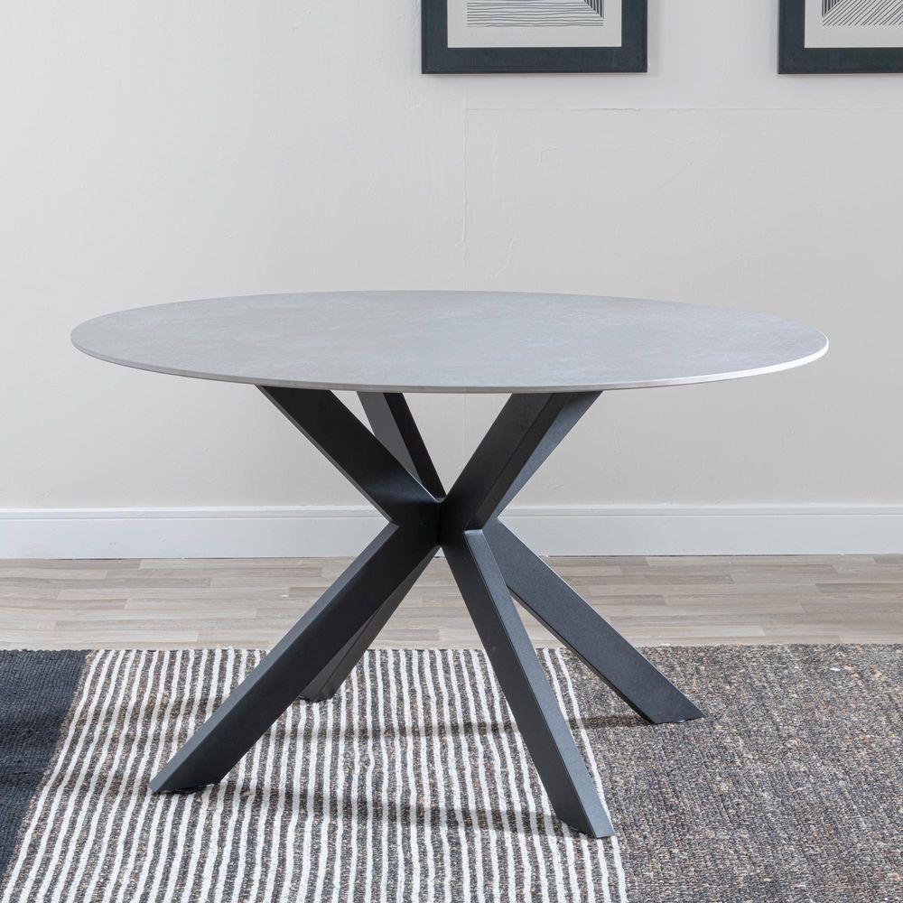 Novara Dining Set - 4 Seater - 130cm - Round - Grey Ceramic - 4x Darwin Dining Chairs - Cream Fabric