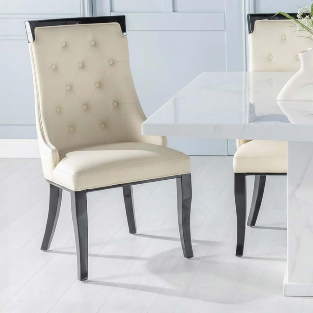 Turin Dining Set - 8 Seater - 140cm - Square - White Marble - Carmela Chairs - Cream Faux Leather