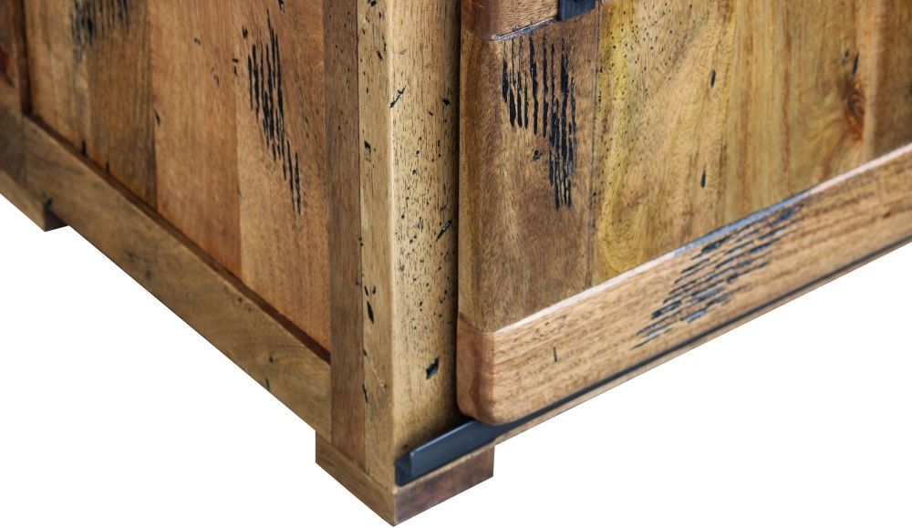Item Code: R009 Please Note that there will be a slight variation between the actual colour and design, and the representation on our website. Actual product color may vary from the images shown. In addition, please be aware that colours and finishes often vary between different batches.Iron Works storage and media solutions, made from solid mango wood, with a natural finish and distressed highlights.