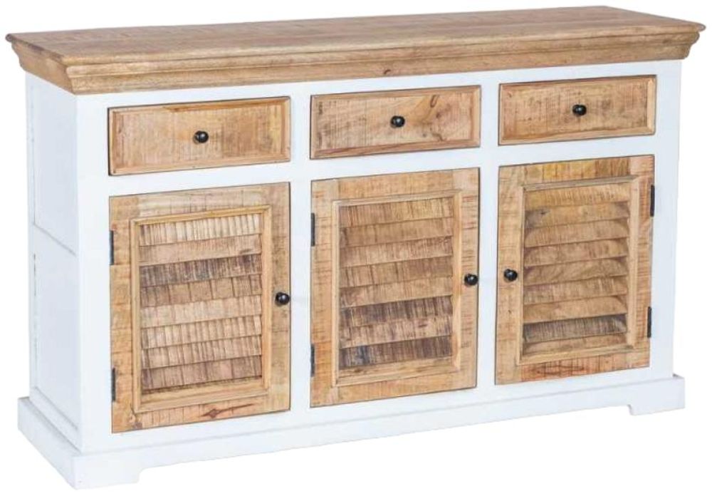 Coastal White and Wood 140cm Medium Sideboard