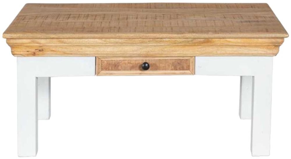 Coastal White and Wood Storage Coffee Table
