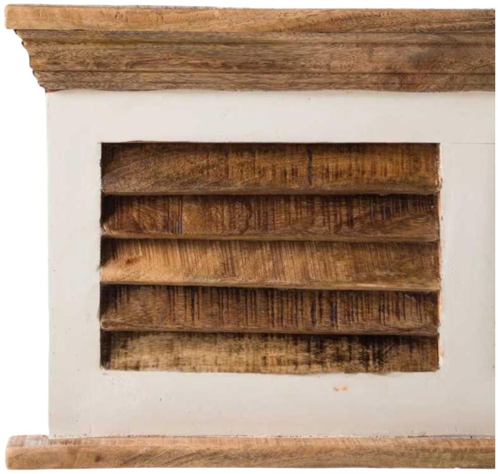 Item Code: MW04 This magnificent hanging unit can be used in conjunction with the small tv cabinet / shoe bench in the same range or as a stand alone item depending on your preference. Numerous uses are available from placing remotes, controllers etc on the shelf or to place keys on the hooks and display small ornaments / photos. Handmade by skilled craftsmen in India making each piece individual and unique.