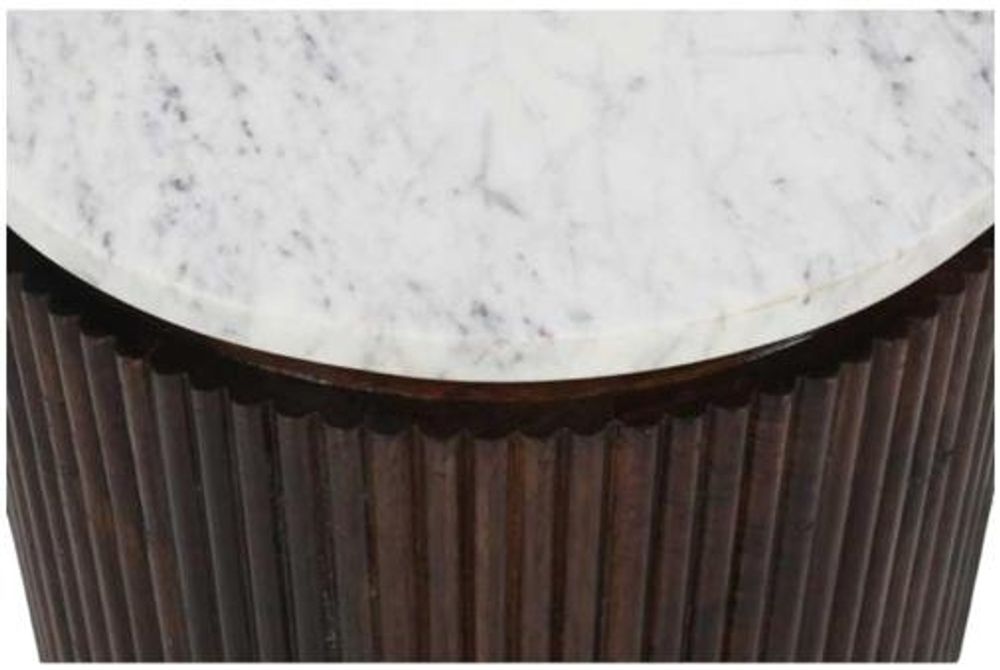 Item Code: MT04 This eye-catching side table is perfect to hold your drink whilst watching tv, along with the remotes and your mobile phone so everything is to hand. The elegant marble top will stand the test of time and the Artwork fluted wood surround compliments it perfectly. Sturdy metal legs complete the look of this item which is completely handmade by our skilled craftsmen in India using eco friendly materials. Made from 100% mango wood and natural marble.