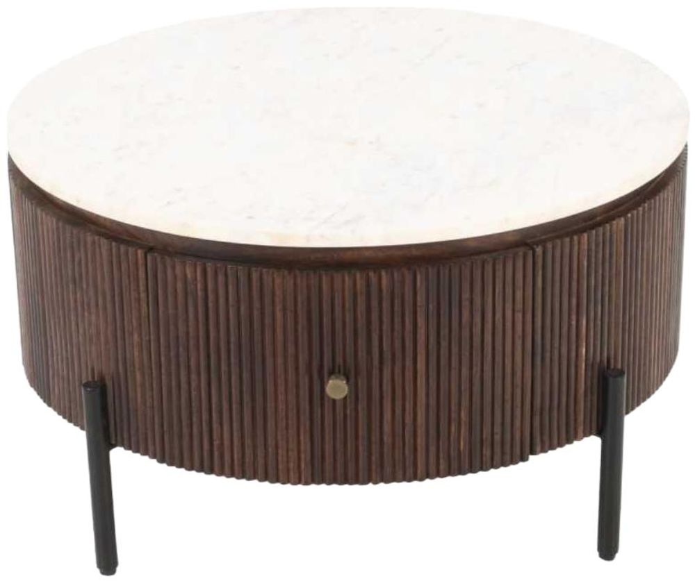 Fluted White Marble Top Storage Round Coffee Table
