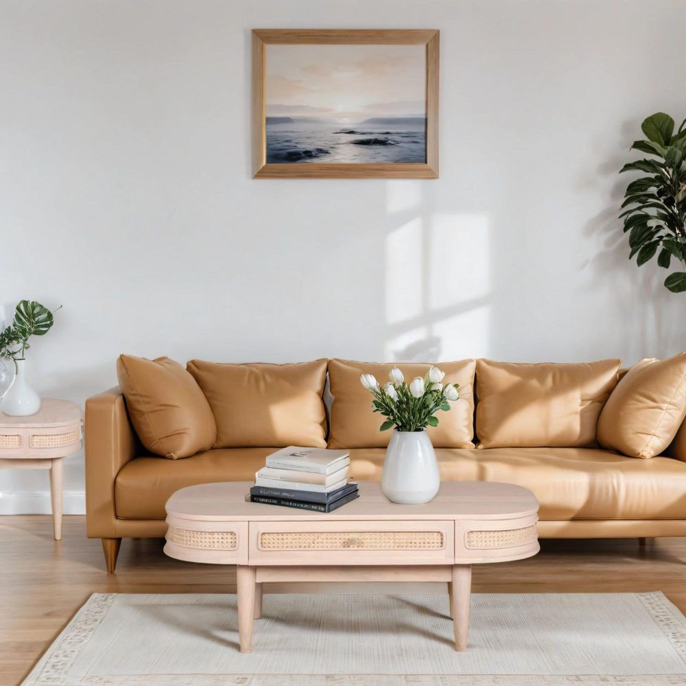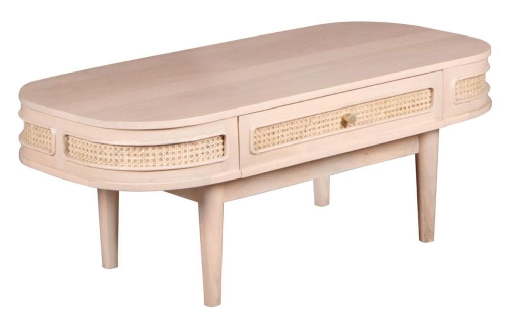 Vance Curved Natural Rattan and Mango Wood Storage Coffee Table